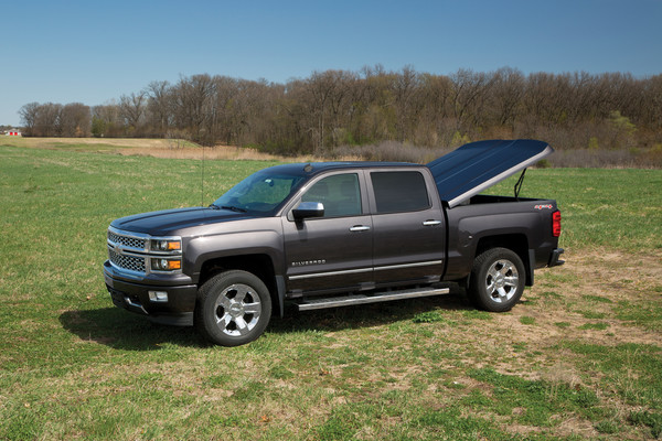 The LEER 750 Sport, a stylish tonneau cover designed exclusively for 2015 (and newer) Chevorlet/GMC, Ford, Ram trucks. Inspired with dimensional aerodynamic styling, and automotive paint, the 750 Sport is the most striking tonneau on the road today