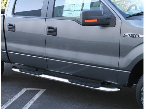 The 4 inch oval is widely becoming a popular choice for most truck owners. The 4 inch oval gives you a little more area to step on when entering or exiting your vehicle. Available for most trucks in both polished stainless steel and a powder coated black finish.