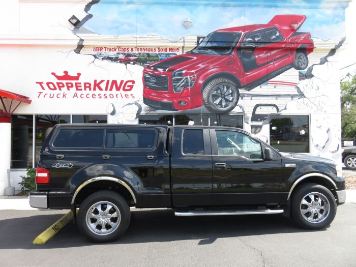 We recently had the pleasure of updating this black 2008 Ford F150 Flareside with a brand new LEER 100R fiberglass topper and Stainless Steel Nerf bars. It’s amazing what a little lovin’ will do for your older model truck. Adding some functional style here and a little bling there makes your ride like new again.