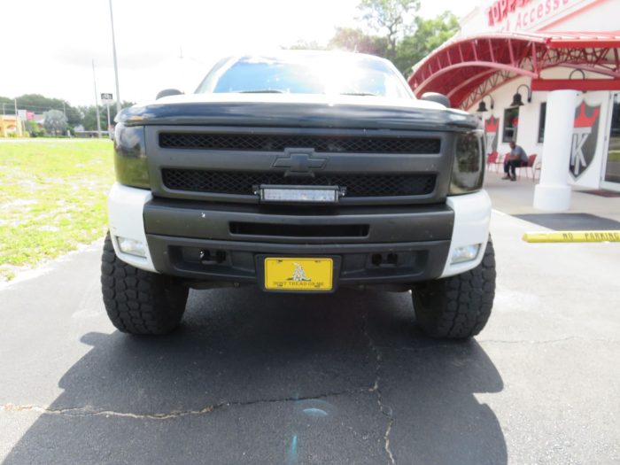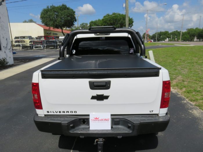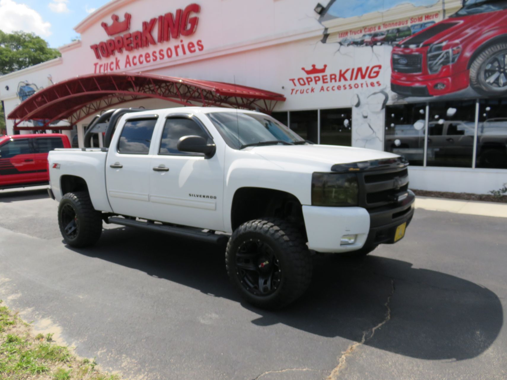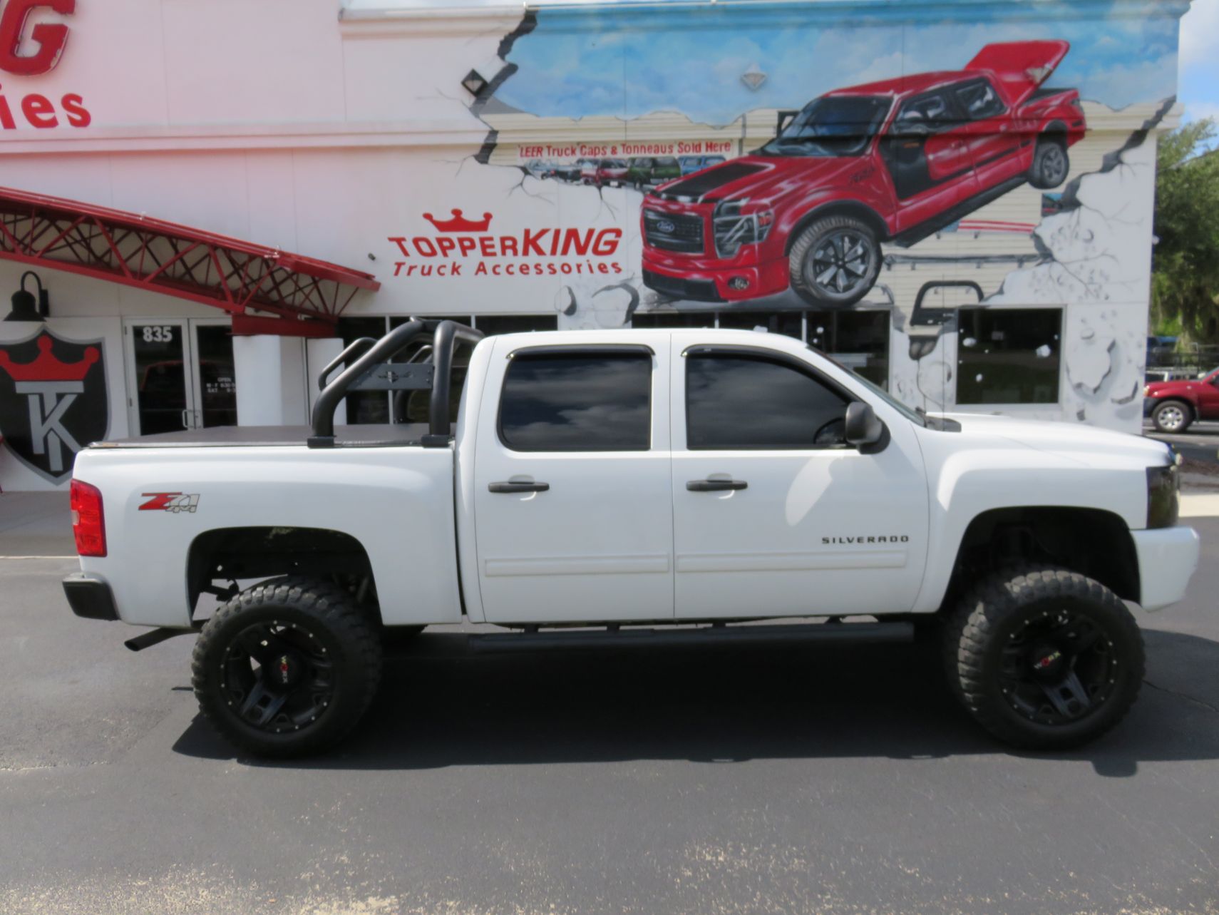 We recently had the pleasure of accessorizing this white 2011 Chevy Silverado with a brand new TruXedo soft bed cover and Blacked Out Nerf bars.