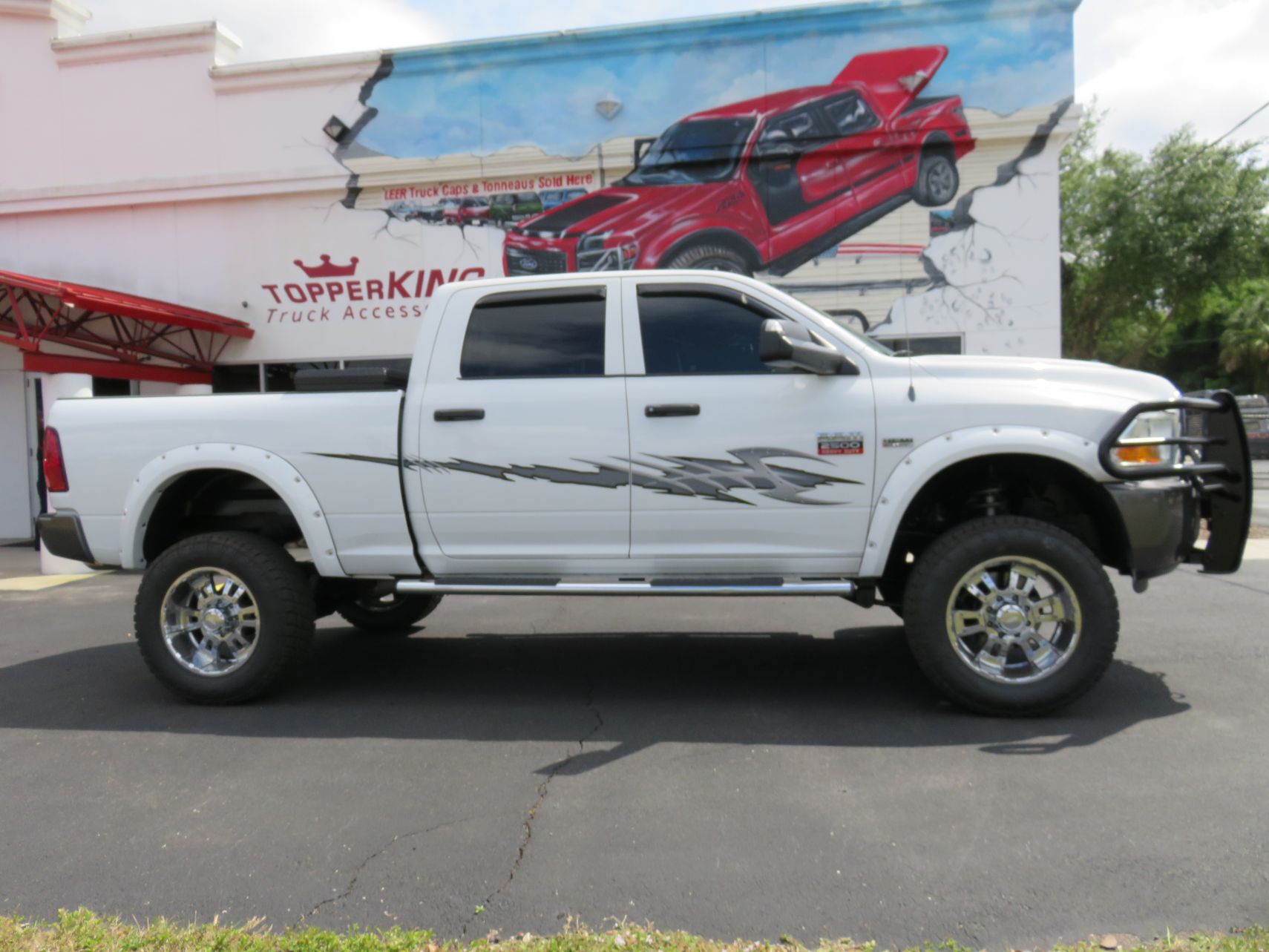 - Custom graphics give your car or truck that final accessory that makes it all yours. TopperKING will work with you to find the right design. Are you looking for simple pin-stripes? Or flames to show off your ride? No matter, TopperKING has you covered. Rear Window Graphics are another great way to finalize your car or truck’s transformation. TopperKING is your one stop source for Vehicle and Window Graphics.