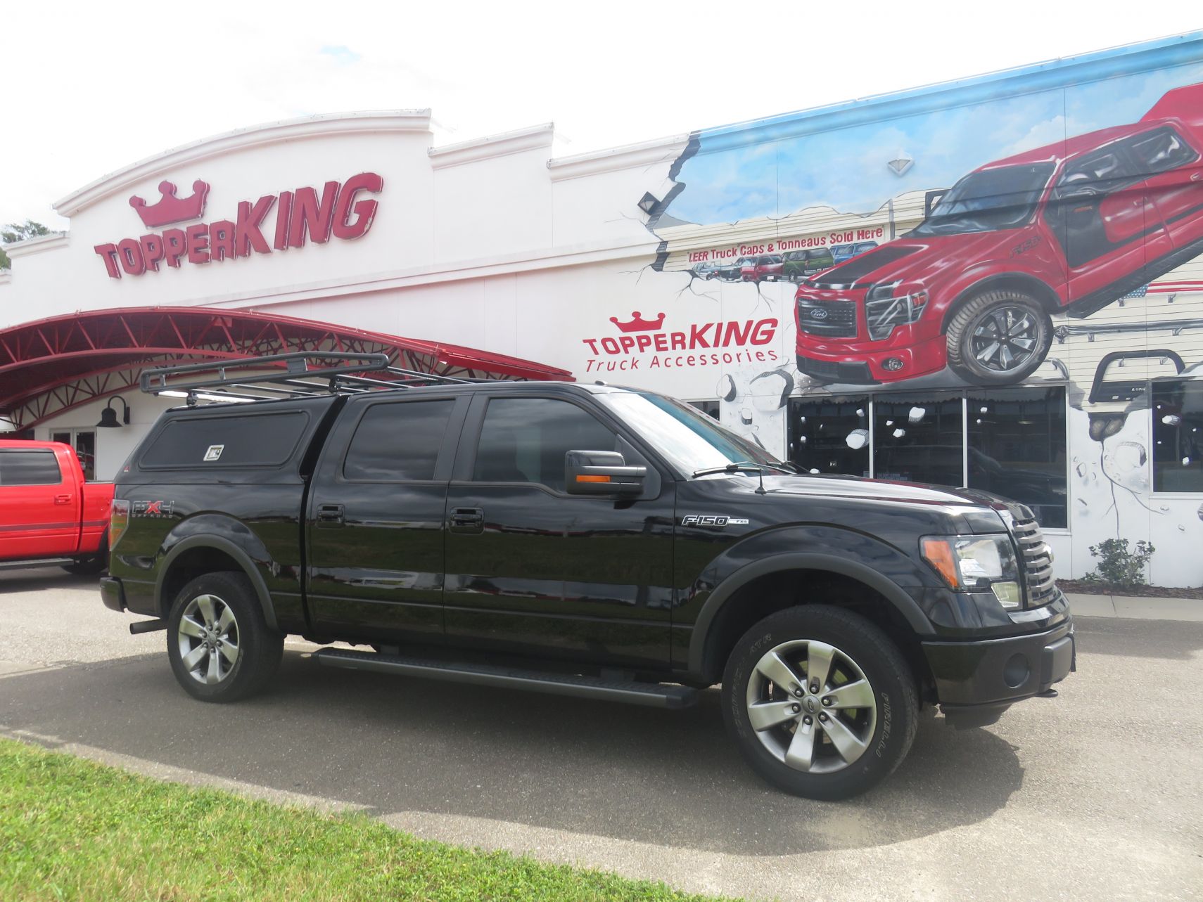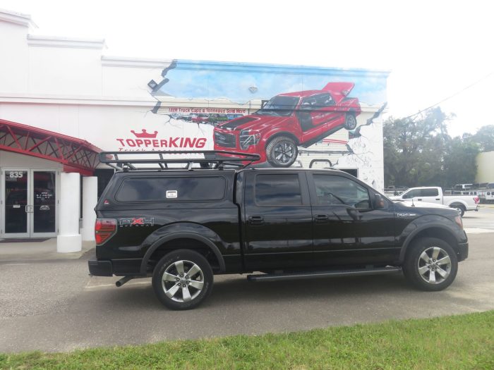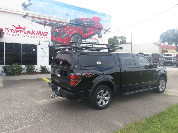 We recently had the pleasure of outfitting this black 2014 Ford F150 with a brand new LEER 100RCC fiberglass work topper and Commercial Roof Racks.