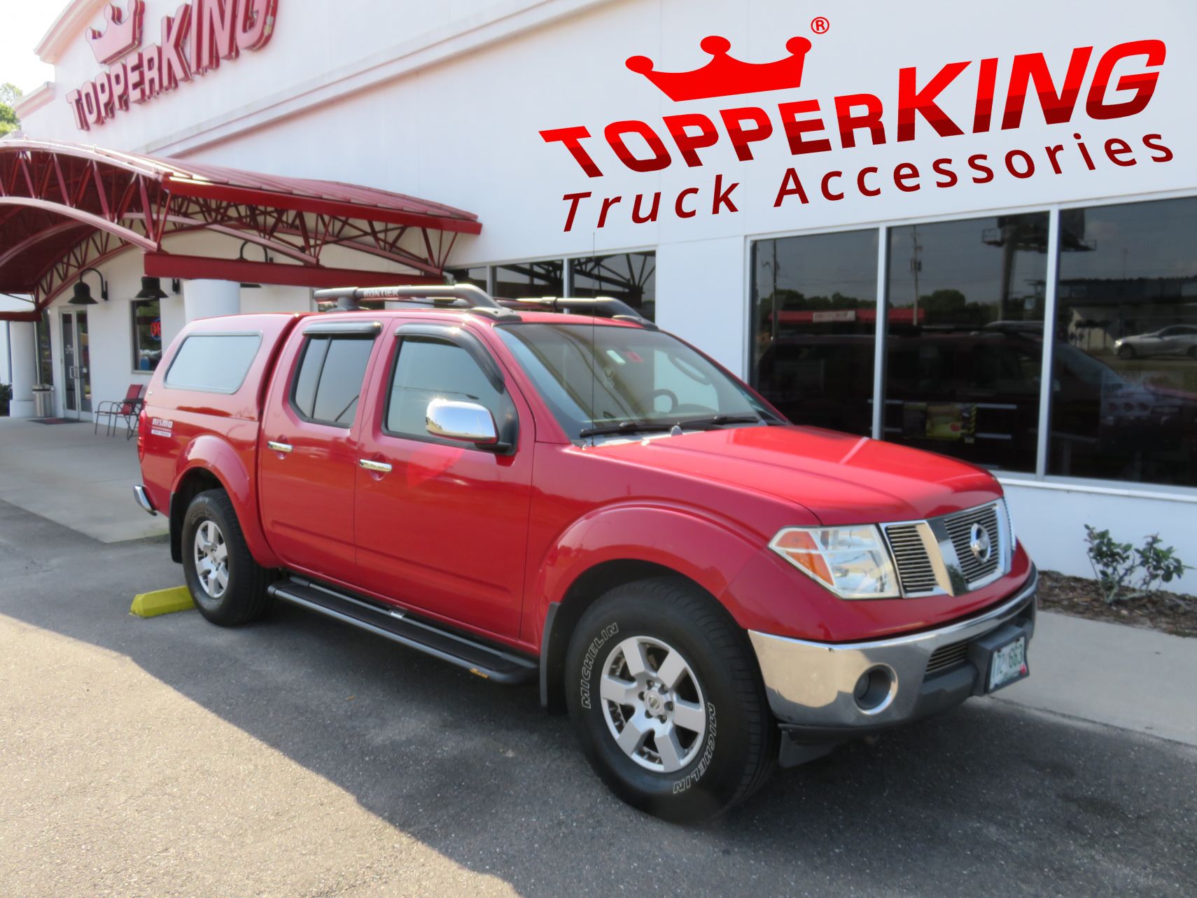 We recently had the pleasure of accessorizing this red 2014 Nissan Frontier with a brand new Ranch Echo fiberglass topper and Roof Racks.