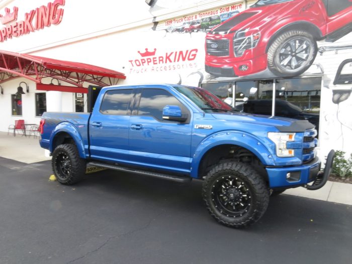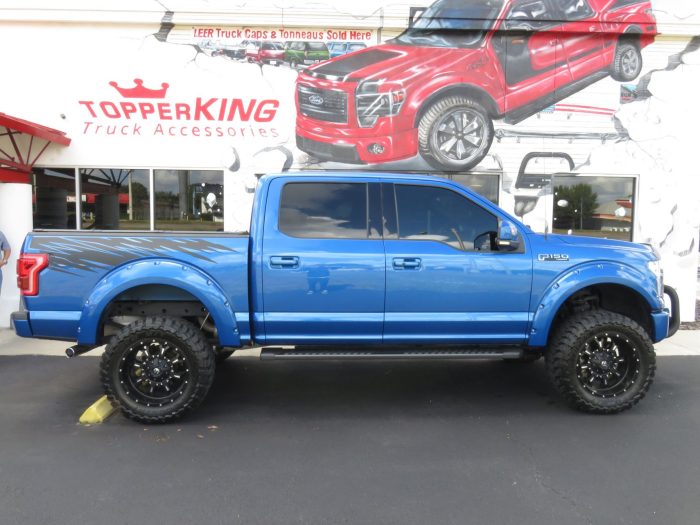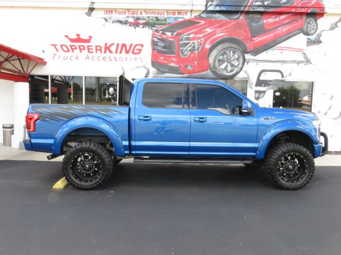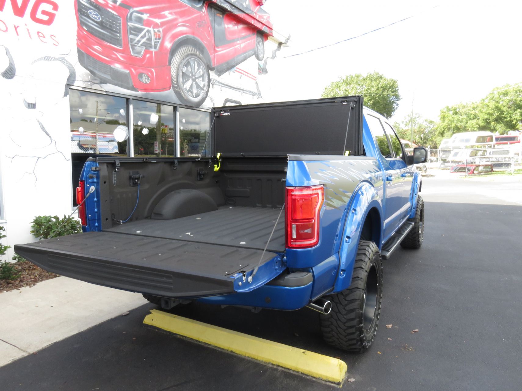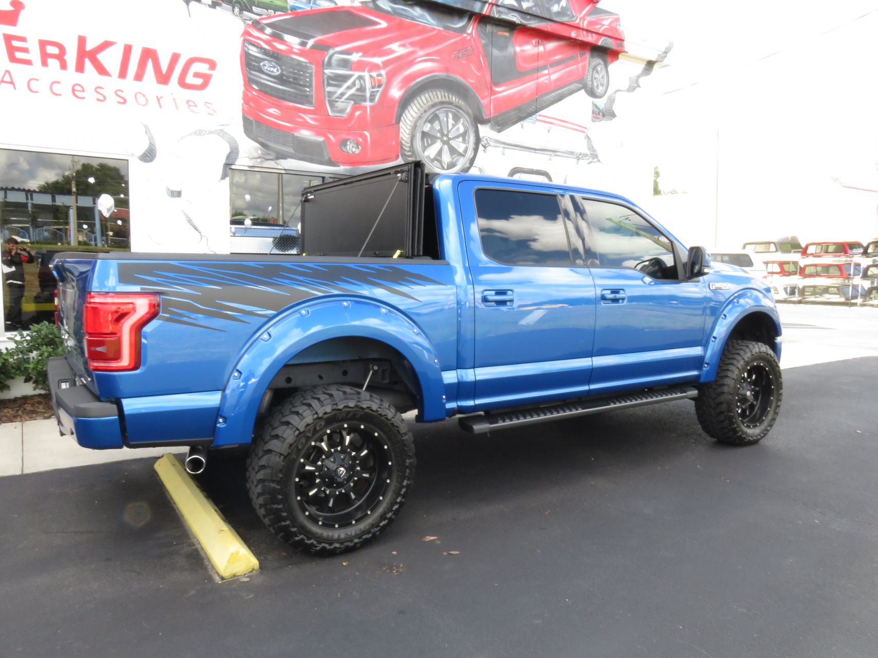 We recently had the pleasure of accessorizing this blue 2015 Ford F150 with a brand new LEER 350M folding lid and Blacked Out Side Steps.