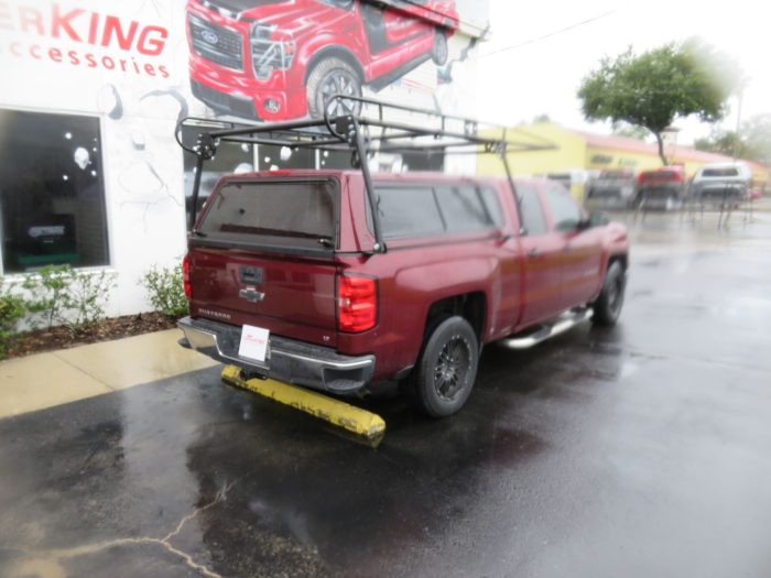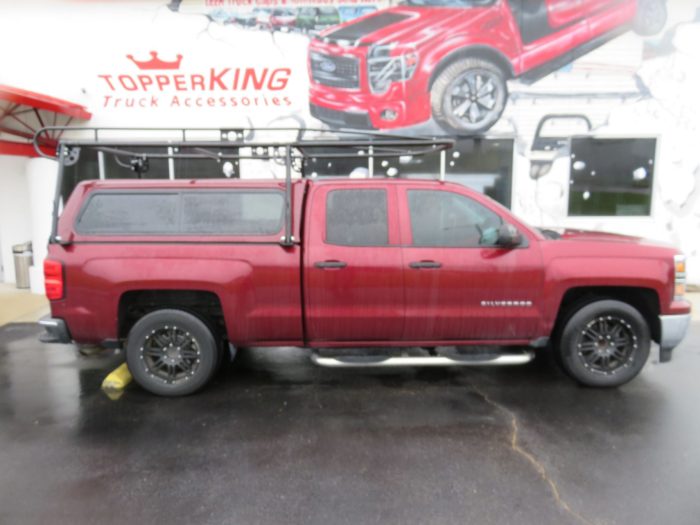 We recently had the pleasure of accessorizing this 2016 red Chevy Silverado with a brand new TK Defender fiberglass topper and over cab ladder rack.