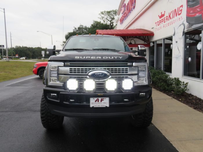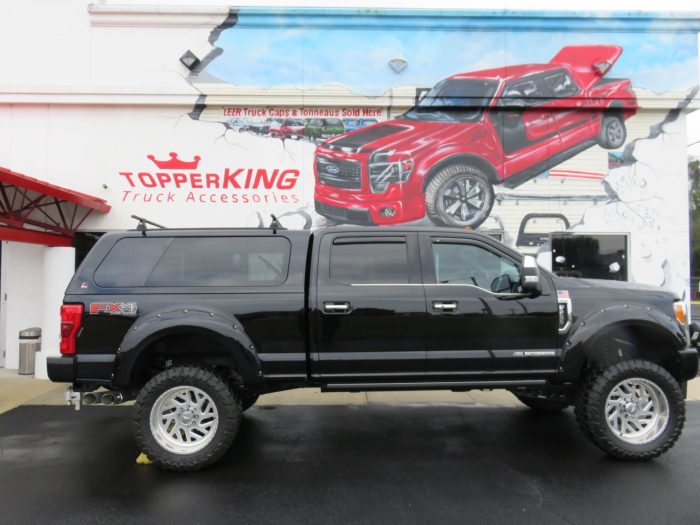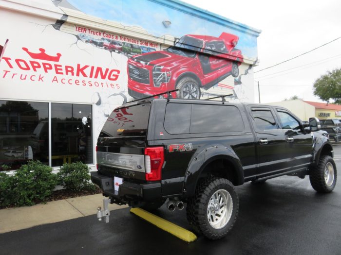 We recently had the pleasure of accessorizing this black 2017 Ford F250 with a brand new LEER 100XL  fiberglass topper and a Hitch.