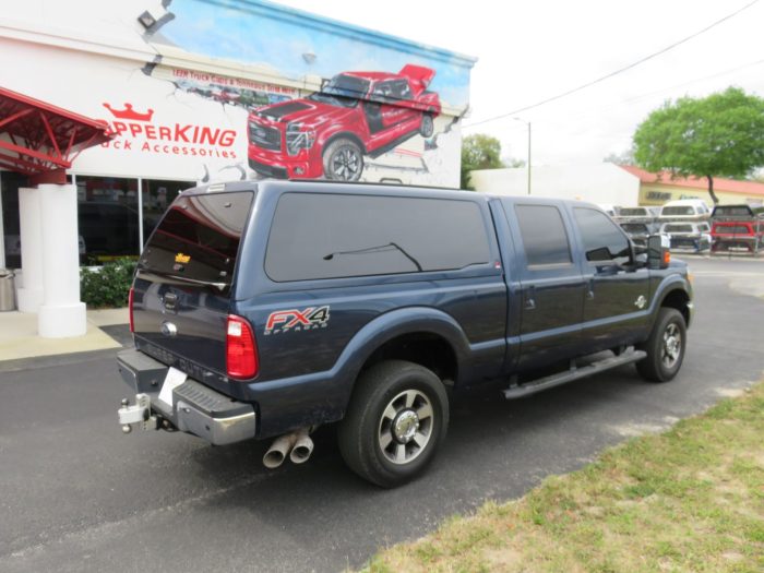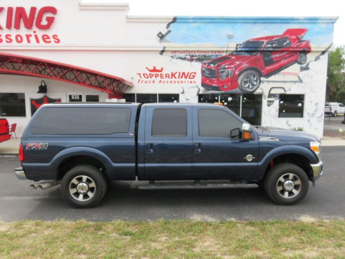 We recently had the pleasure of accessorizing this blue 2017 Ford F250 with a brand new LEER 100XQ fiberglass topper and Blacked Out Nerf bars.