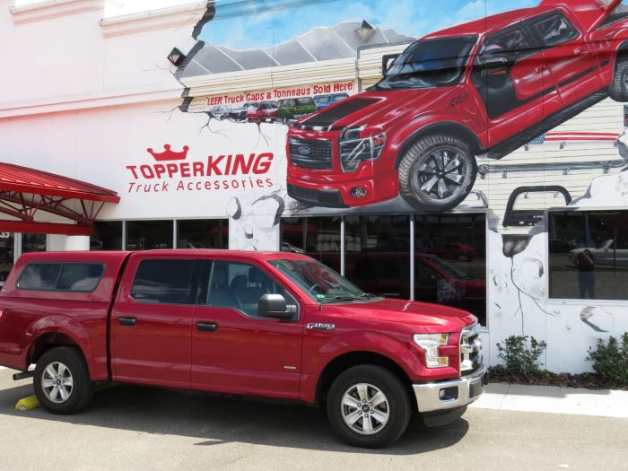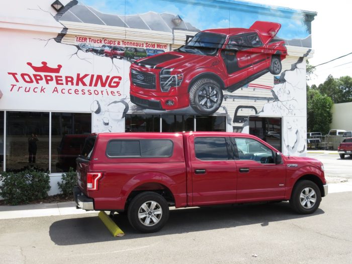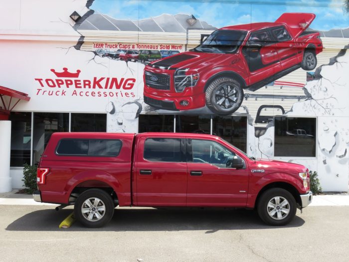 We recently had the pleasure of accessorizing this red 2017 Ford F150 with a brand new Ranch Sierra fiberglass topper and a Heavy Duty Bed Mat.