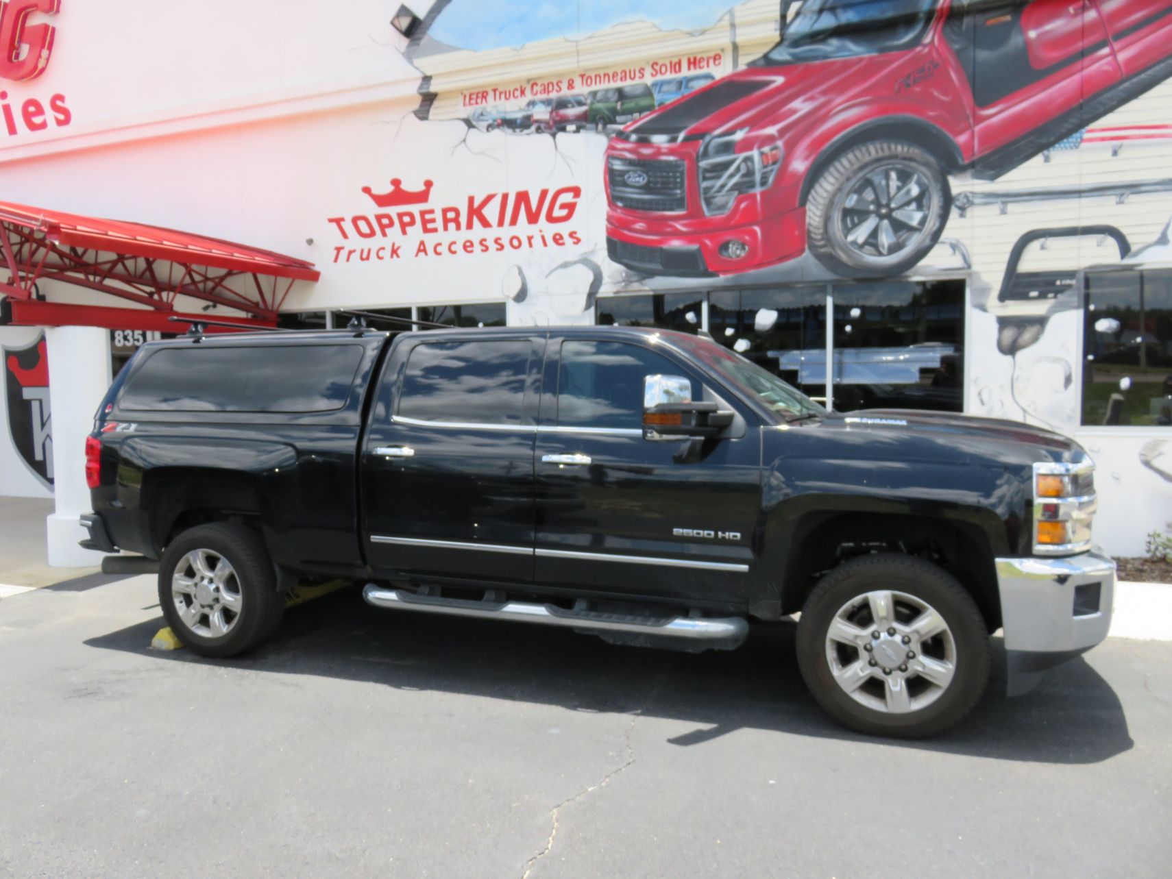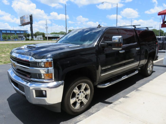 We recently had the pleasure of accessorizing this 2018 Black Chevy Silverado with a brand new LEER 100XQ fiberglass topper and Stainless Steel Nerf bars.
