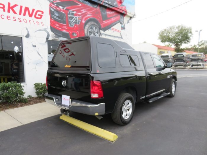 We recently had the pleasure of accessorizing this black 2018 Dodge RAM with a brand new LEER 122 fiberglass topper and Stainless Steel Nerf bars.