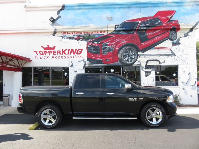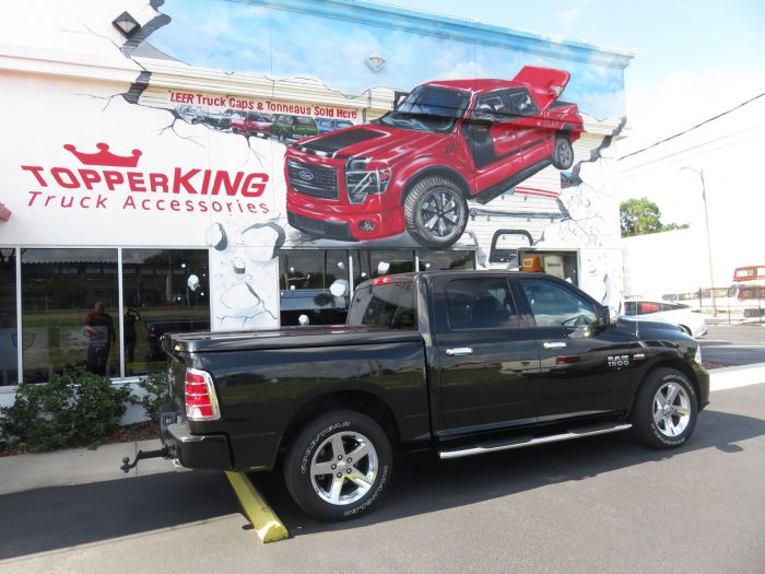 We recently had the pleasure of accessorizing this black 2018 Dodge RAM 1500 with a brand new LEER 700 fiberglass lid and Stainless Steel Nerf bars.