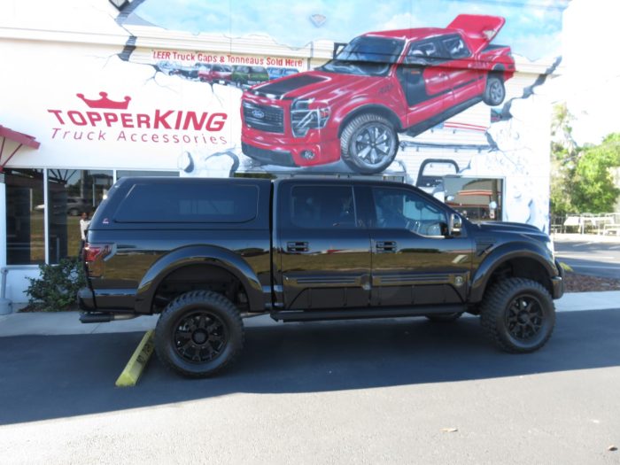 We recently had the pleasure of accessorizing this black 2018 Ford F150 with a brand new LEER 100XQ fiberglass topper and blacked out Bull Bars.