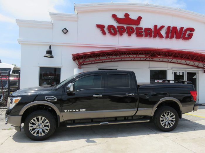 We recently had the pleasure of accessorizing this black 2018 Nissan Titan with a brand new Ranch Legacy Fiberglass Lid and Running Boards.