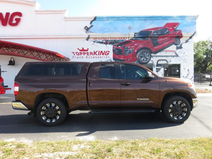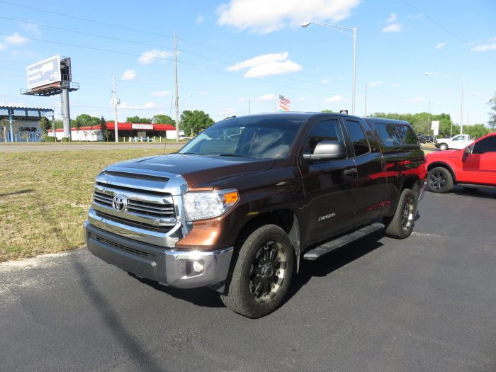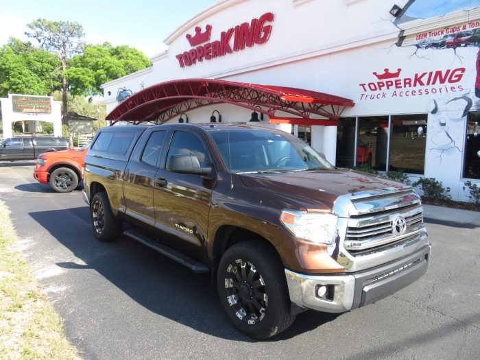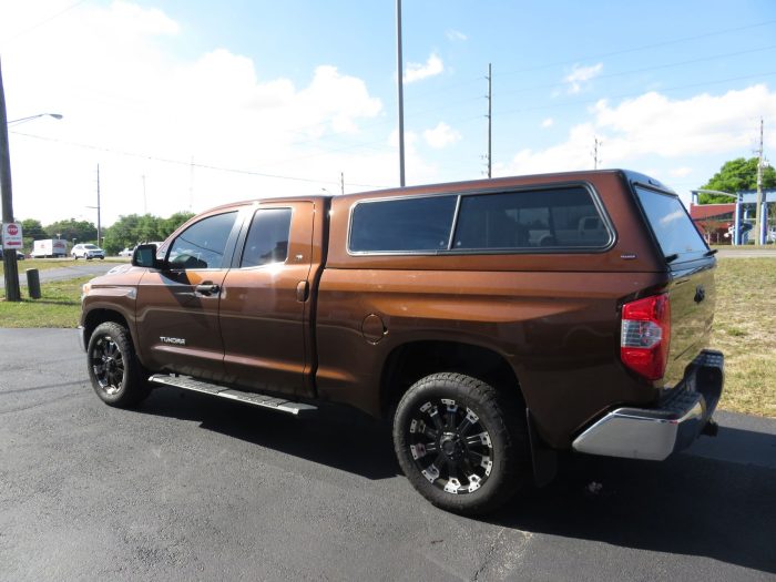 We recently had the pleasure of accessorizing this bronze 2018 Toyota Tundra with a brand new Ranch Sierra fiberglass topper and Hitch.