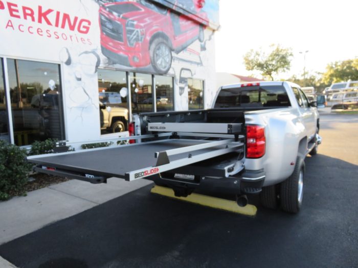 We recently had the pleasure of accessorizing this silver 2018 Chevy Silverado with a brand new Roll-n-Lock and Bed Slide.