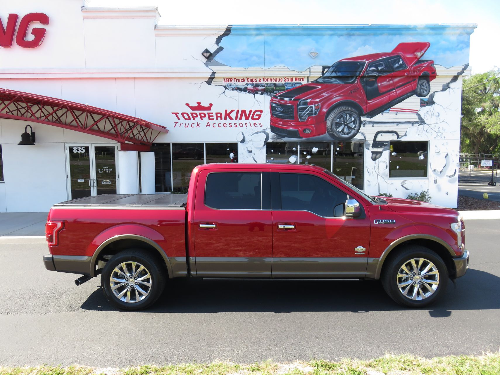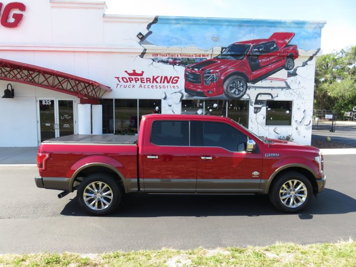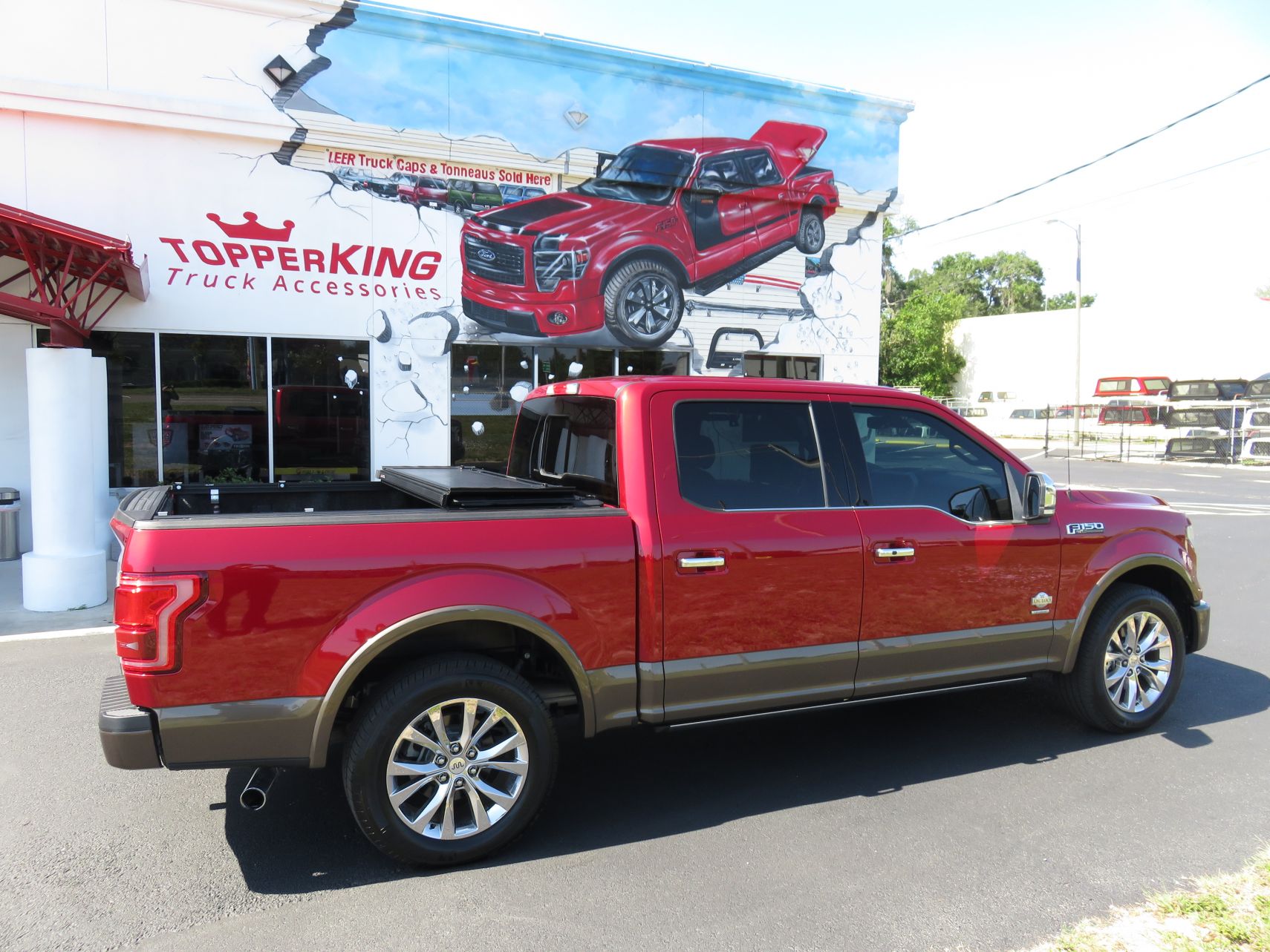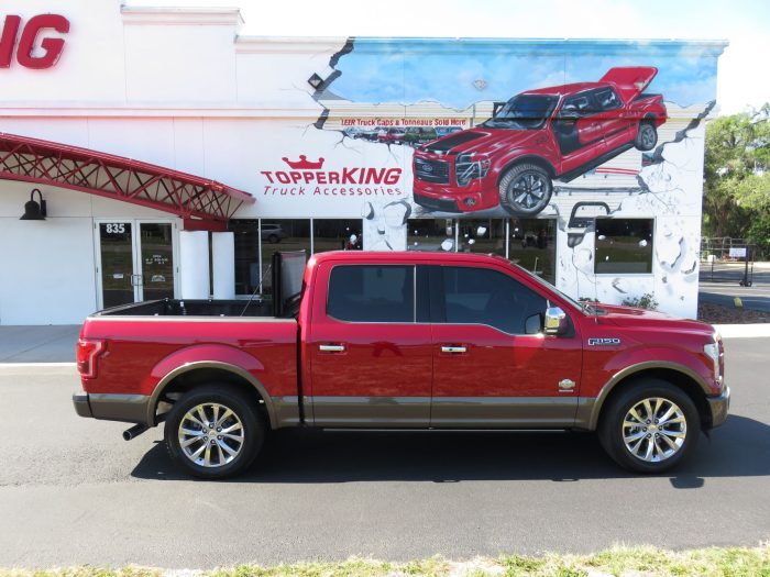 We recently had the pleasure of accessorizing this Ruby Red Ford 2018 Ford F150 with a brand new LEER 350M/TrilogyX2T tri-fold tonneau and Window Tint.