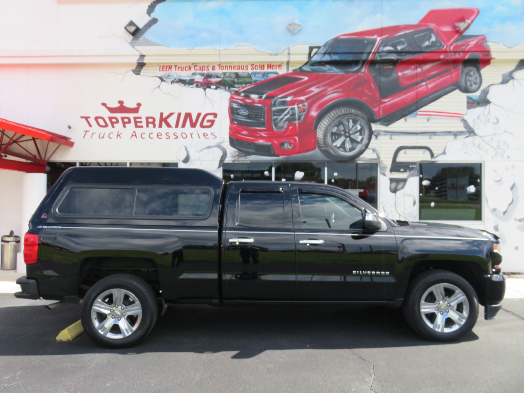 We recently had the pleasure of accessorizing this black 2018 Chevy Silverado with a brand new LEER 180 fiberglass topper and Vent Visors