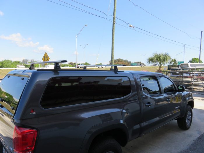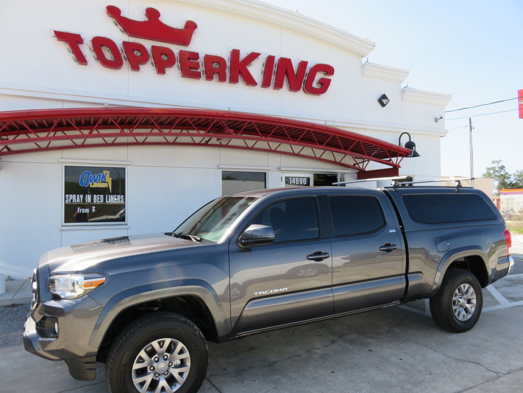 We recently had the pleasure of accessorizing this grey 2018 Toyota Tacoma with a brand new LEER 100XQ fiberglass topper and Roof Racks.