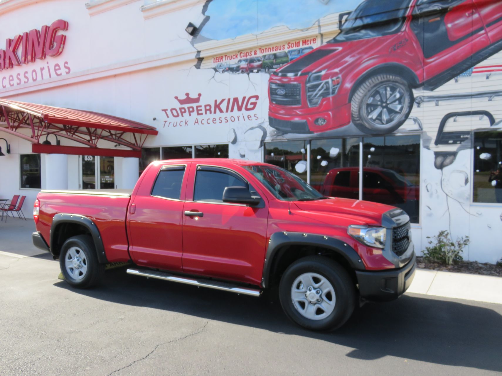 We recently had the pleasure of accessorizing this red 2018 Toyota Tundra with a brand new TruXedo TruXport Soft Tonneau Cover and Fender Flares.