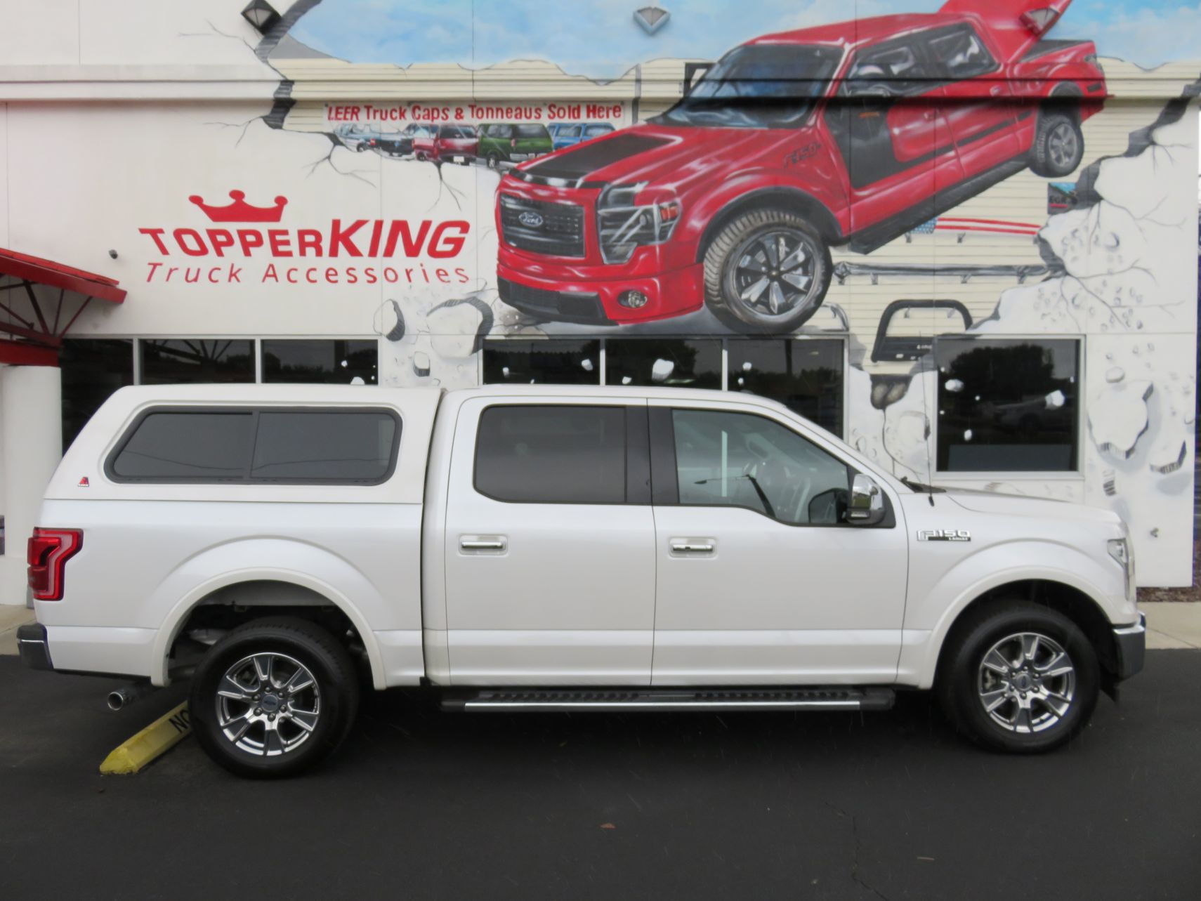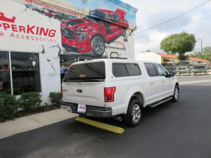 We recently had the pleasure of accessorizing this white 2018 Ford F150 with a brand new LEER 100XR fiberglass topper and Stainless Steel Nerf bars.