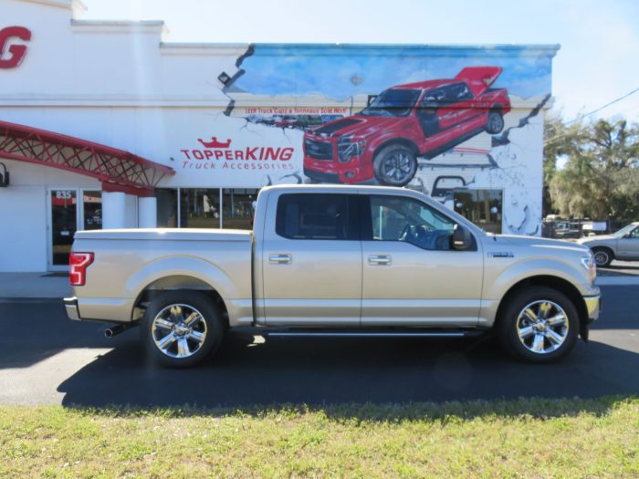 We recently had the pleasure of accessorizing this gold 2019 Ford F150 with a brand new LEER 550 Fiberglass Lid and Stainless Steel Nerf bars.