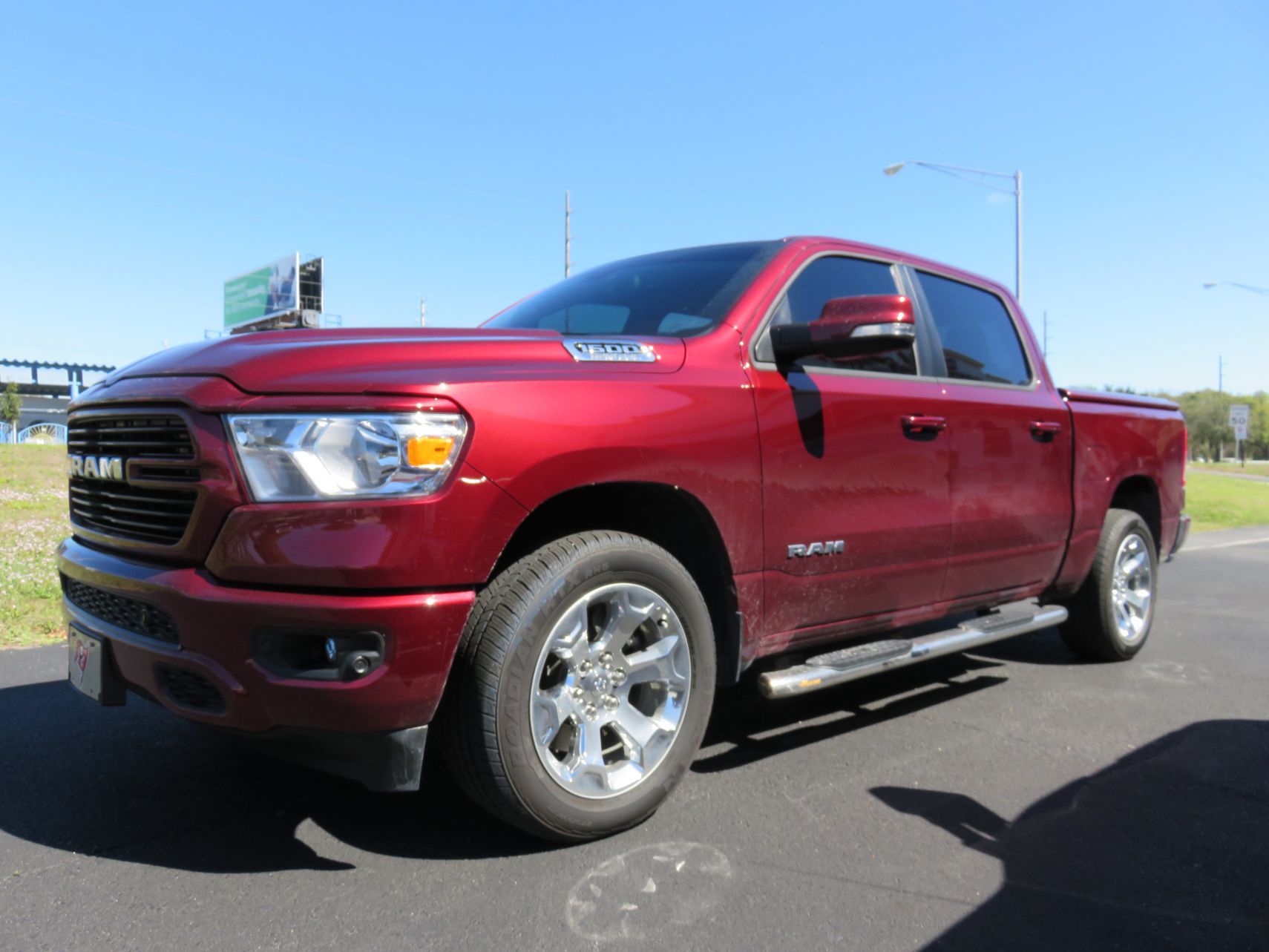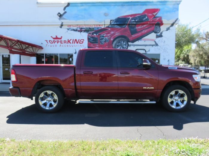 We recently had the pleasure of accessorizing this Red 2019 Dodge RAM with a brand new Undercover LUX lid and Stainless Steel Nerf bars.