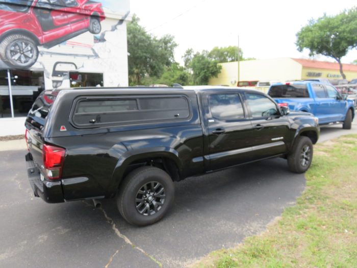 We recently had the pleasure of accessorizing this 2020 Black Toyota Tacoma with a LEER 100XR and Windoor Sliders.