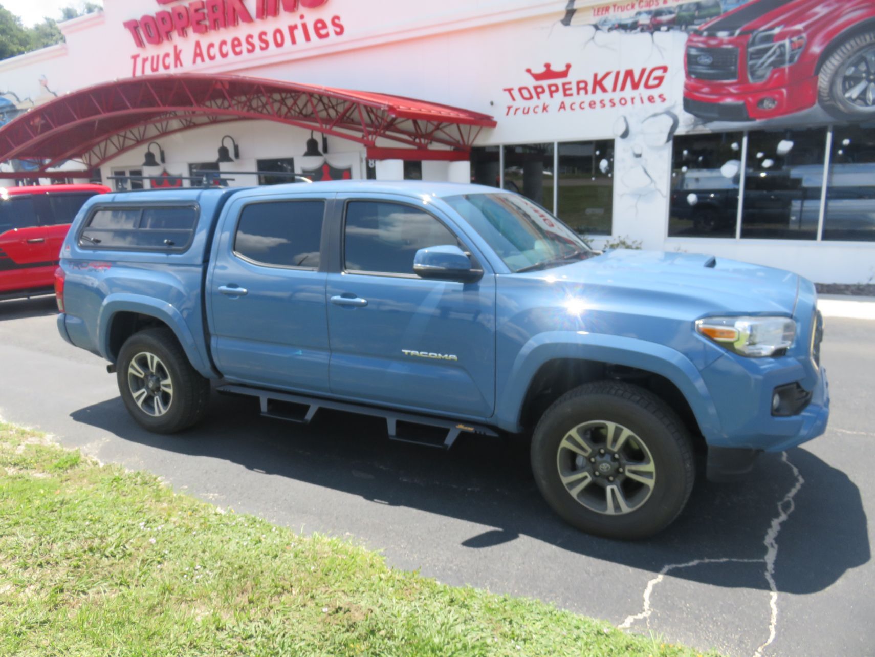We recently had the pleasure of accessorizing this 2020 Blue Toyota Tacoma with a brand new LEER 100XR fiberglass topper.