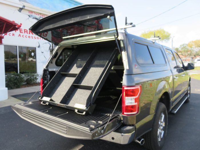 We recently had the pleasure of accessorizing this grey 2020 Ford F150 with a brand new LEER 100R fiberglass topper and LEER Locker.