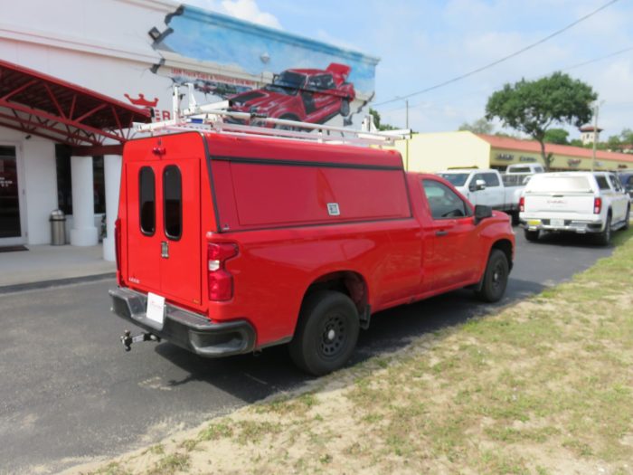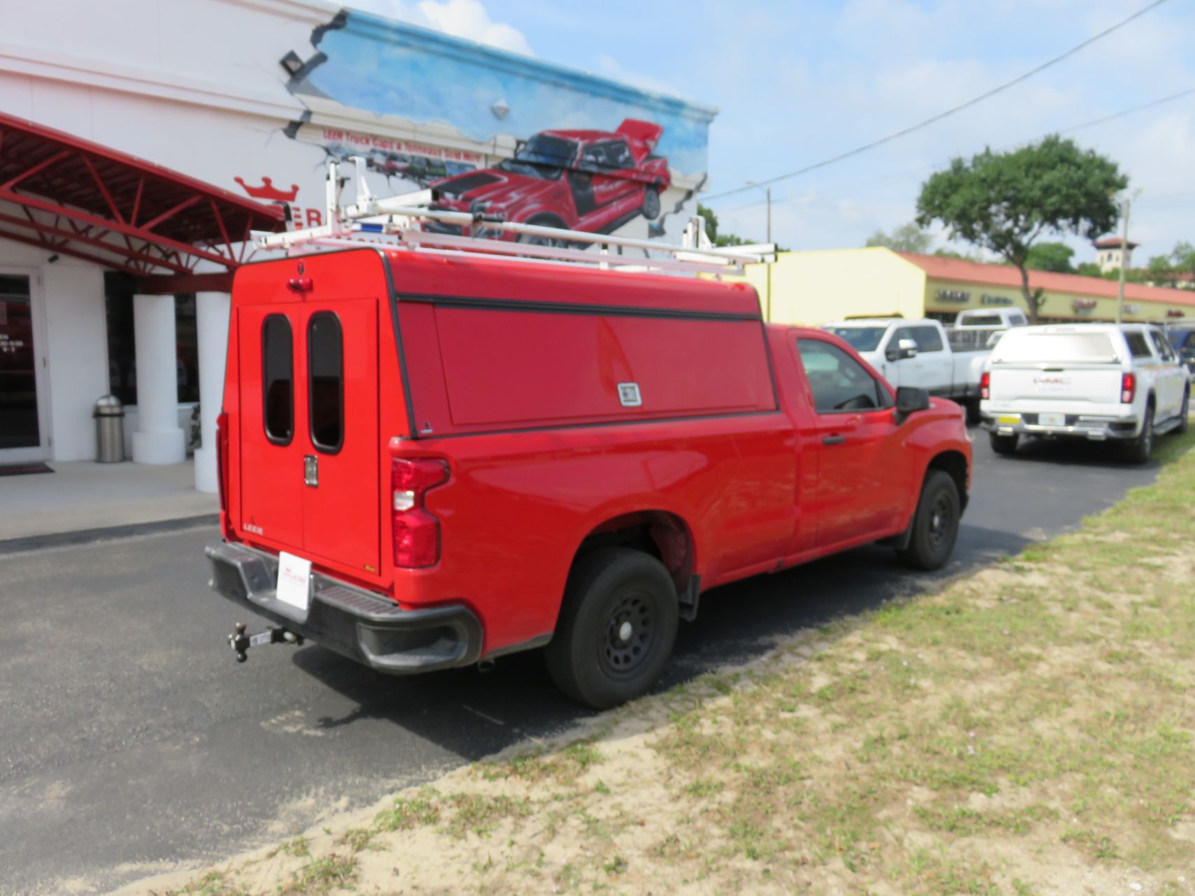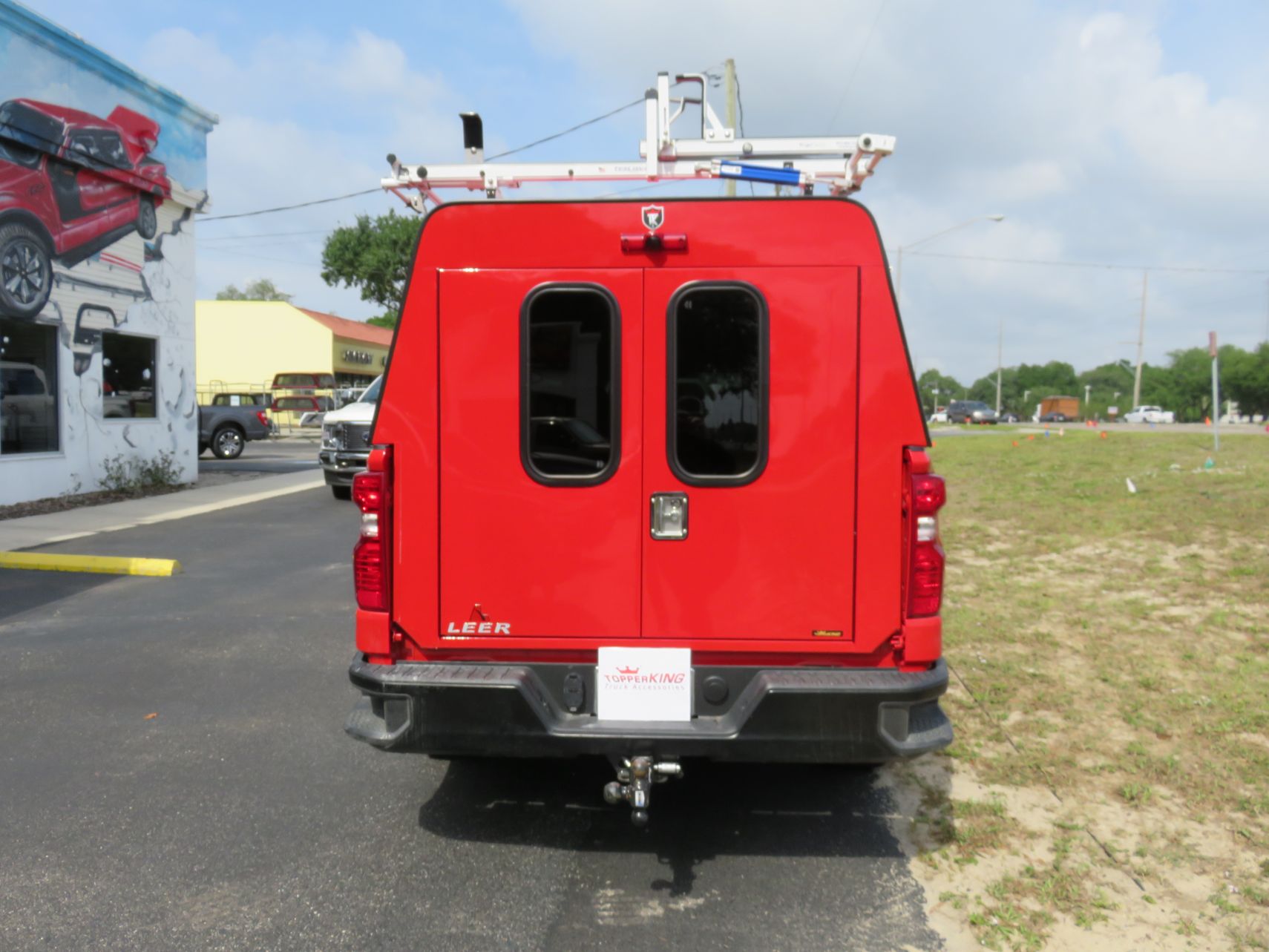 We recently had the pleasure of accessorizing this red 2020 Chevrolet Silverado with a brand new LEERDCC commercial topper and Roof Racks.