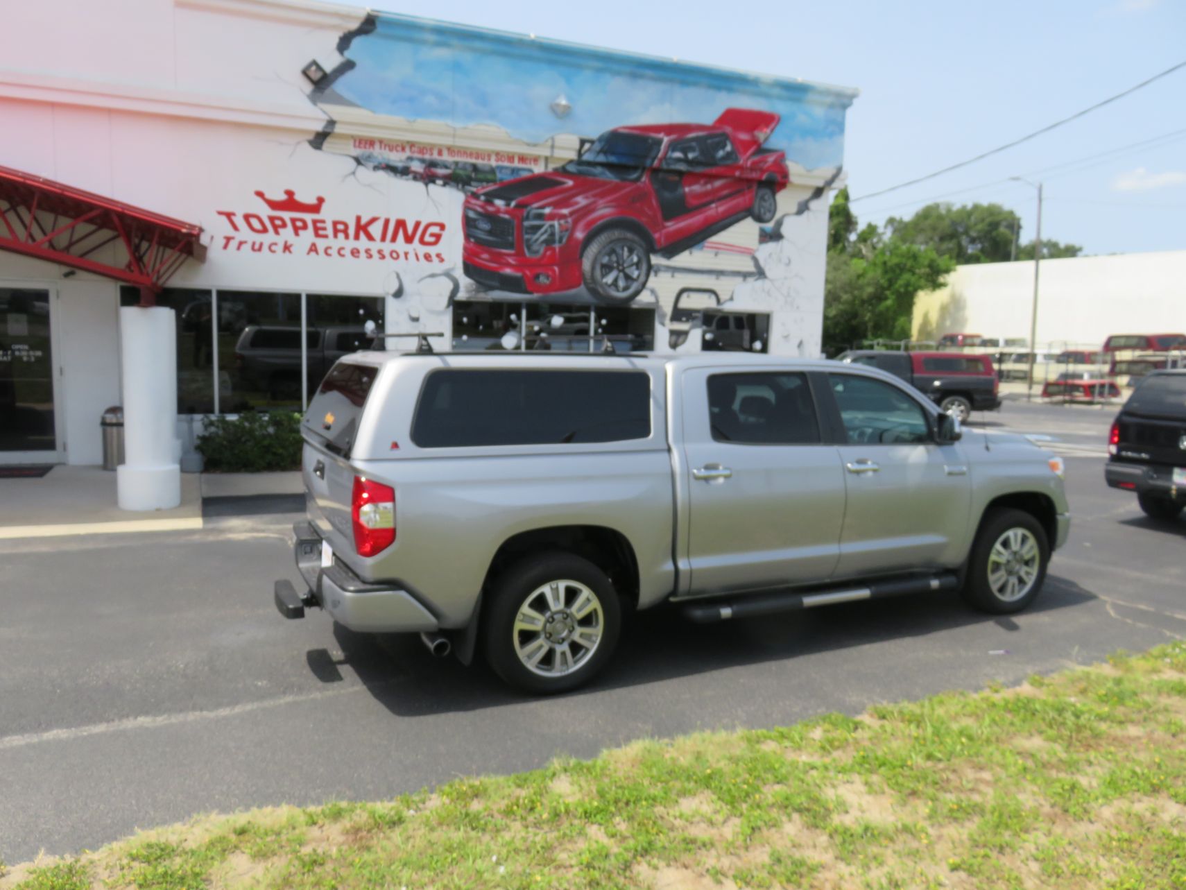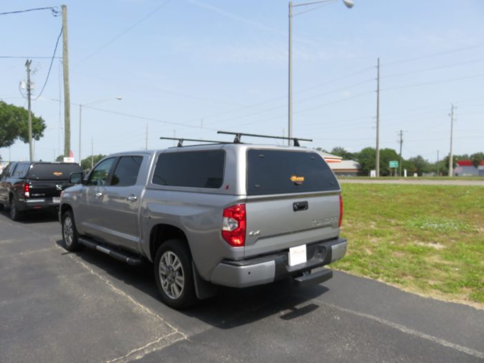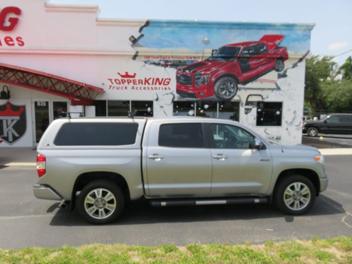 We recently had the pleasure of accessorizing this silver 2020 Toyota Tundra with a brand new LEER 100XQ fiberglass topper and Stainless Steel Nerf bars.