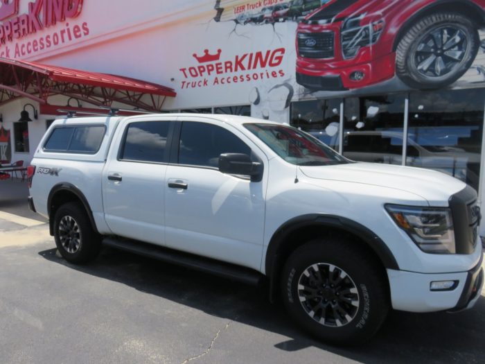We recently had the pleasure of accessorizing this 2020 White Nissan Titan with a brand new LEER 100XR fiberglass topper.