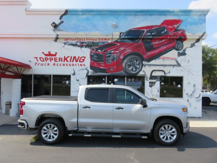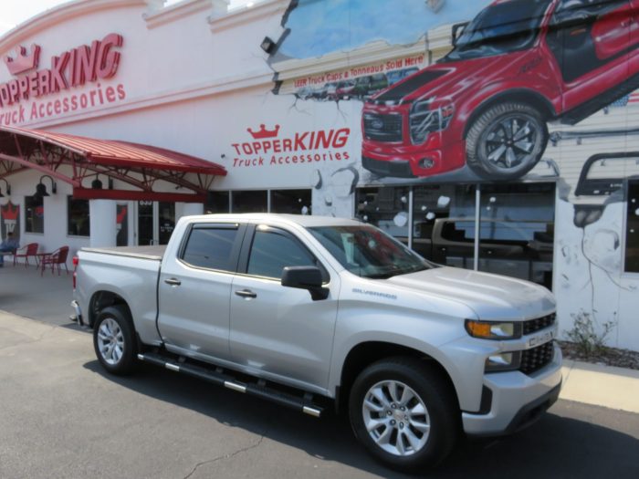 We recently had the pleasure of accessorizing this silver 2021 Chevy Silverado with a brand new TruXport soft tonneau and Stainless Steel Nerf bars.