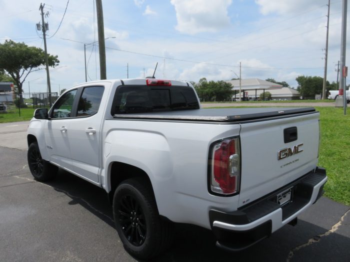We recently had the pleasure of accessorizing this 2021 white GMC Canyon with a brand new Truxedo Truxport Tonneau Cover.