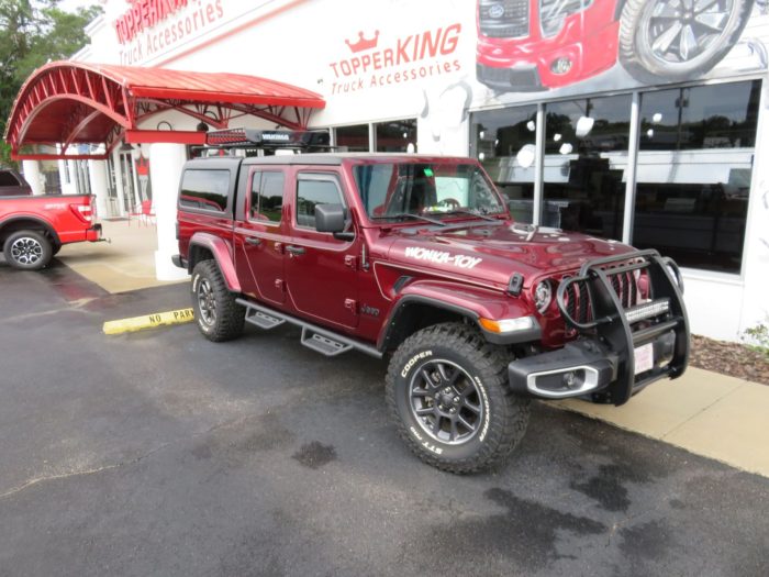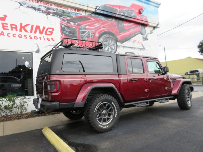 We recently had the pleasure of accessorizing this 2022 red Jeep Gladiator with a brand new LEER 100XQ fiberglass topper.