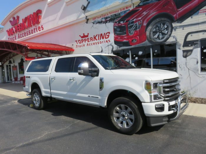 Other goodies on this 2022 white Ford F250 with LEER 100XQ include: