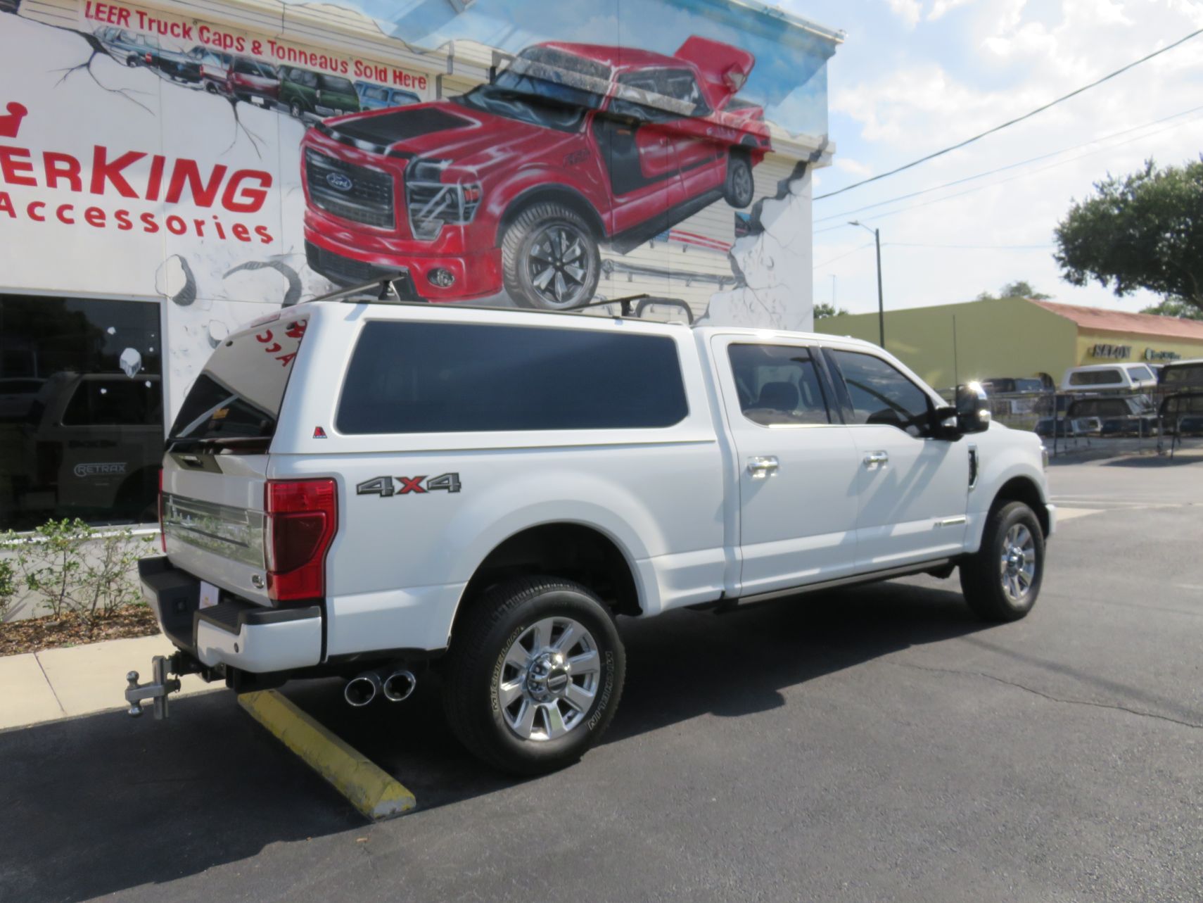 We recently had the pleasure of accessorizing this 2022 white Ford F250 with a brand new LEER 100XQ fiberglass topper.