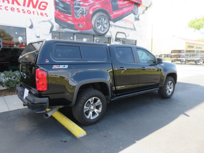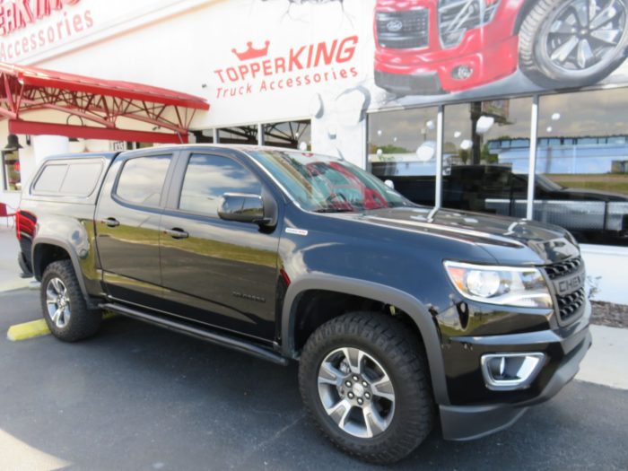 We recently had the pleasure of accessorizing this black 2020 Chevrolet Colorado with a brand new LEER 100XR fiberglass topper and Side Steps.