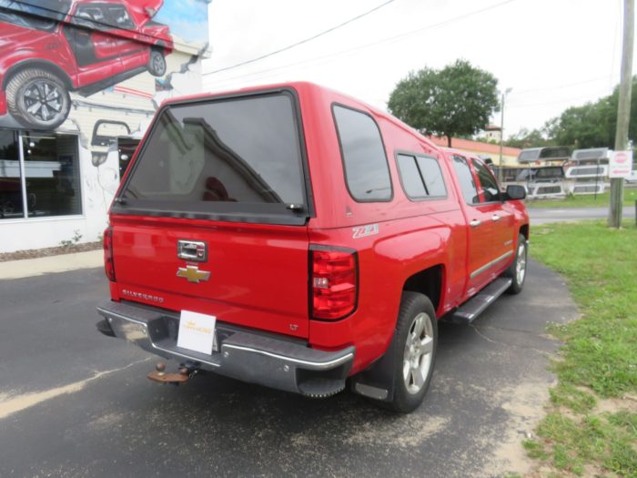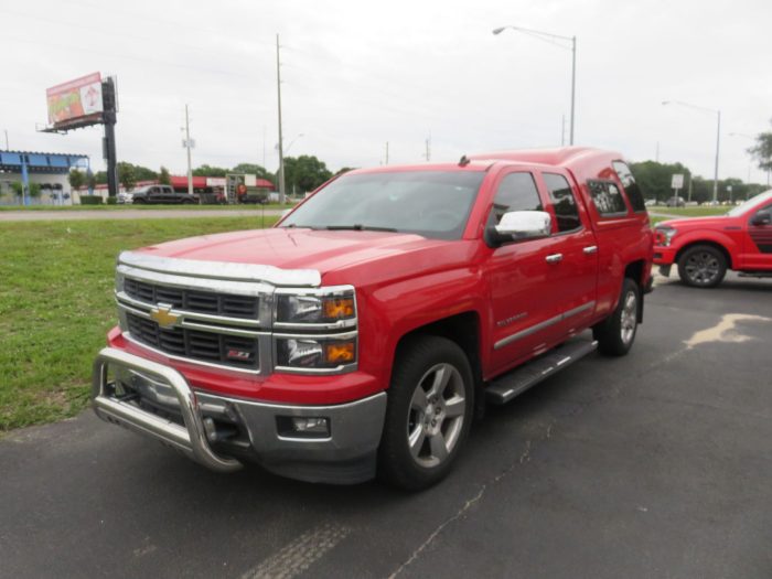 We recently had the pleasure of accessorizing this red 2014 Chevrolet Silverado with a brand new LEER 122 fiberglass topper and Running Boards.