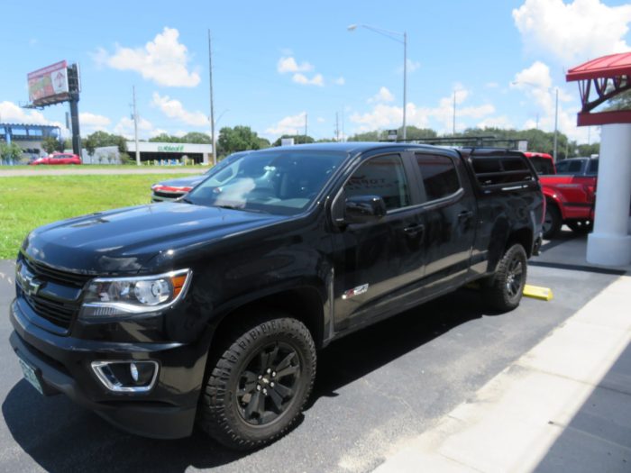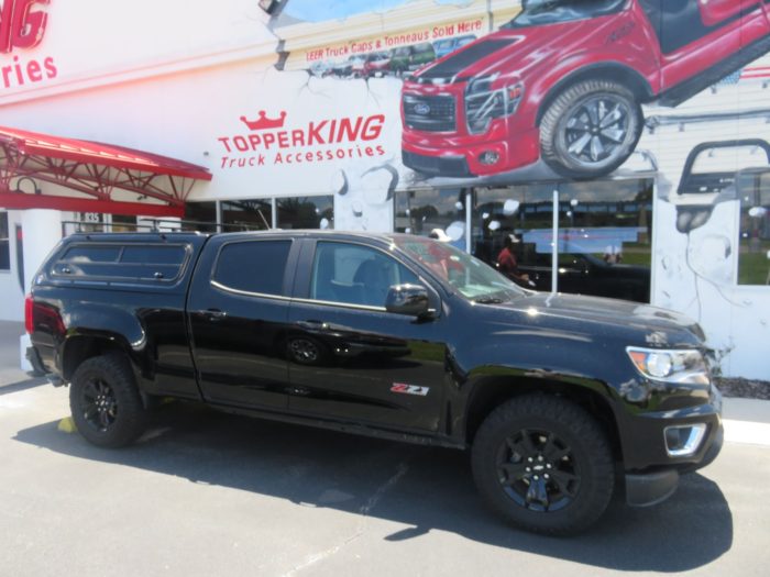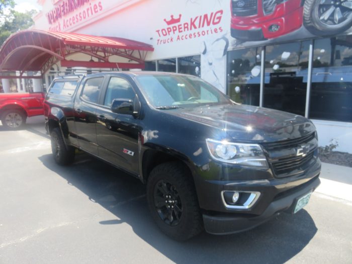 We recently had the pleasure of accessorizing this black 2020 Chevy Colorado with a brand new LEER 100XR fiberglass topper and Roof Racks.