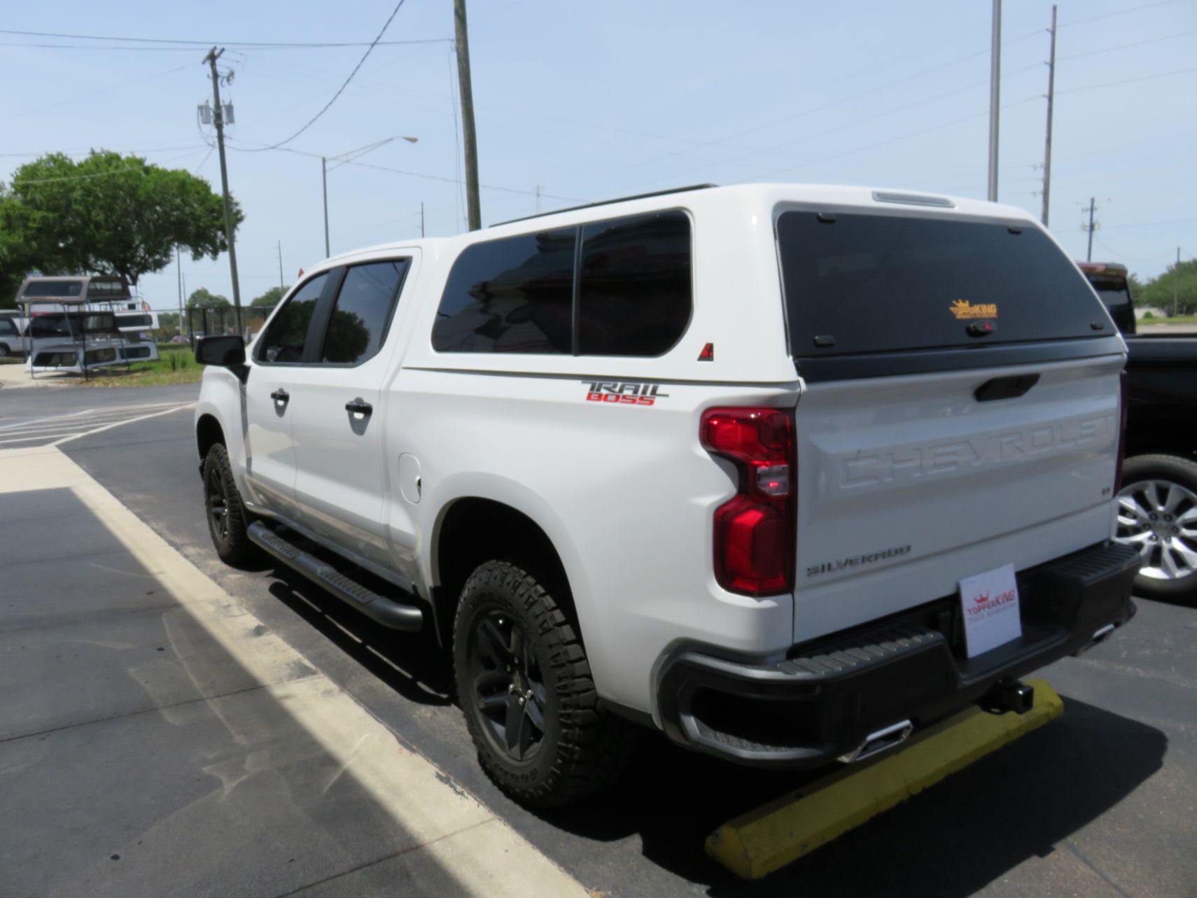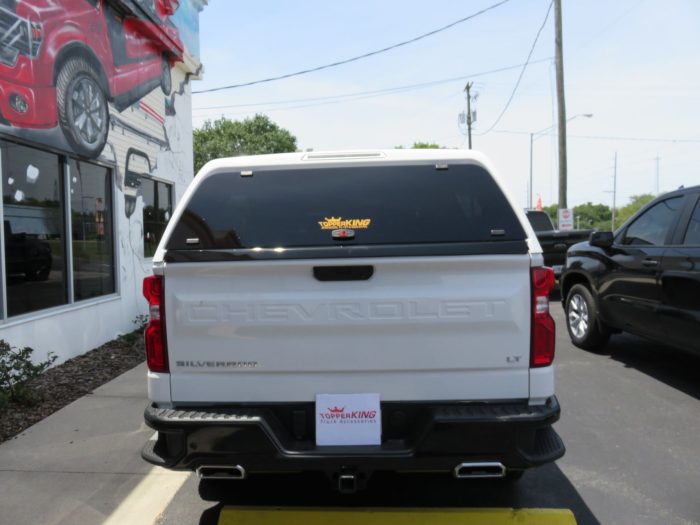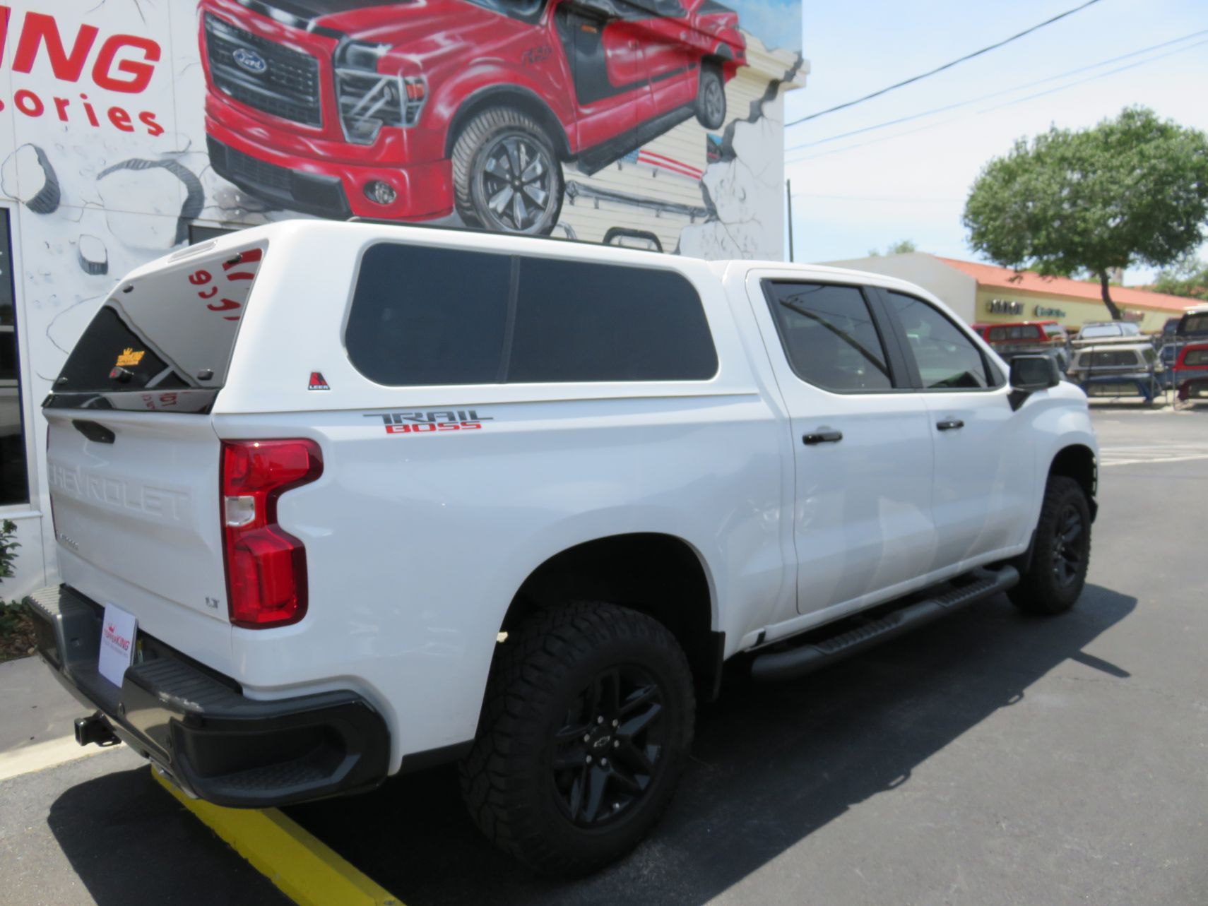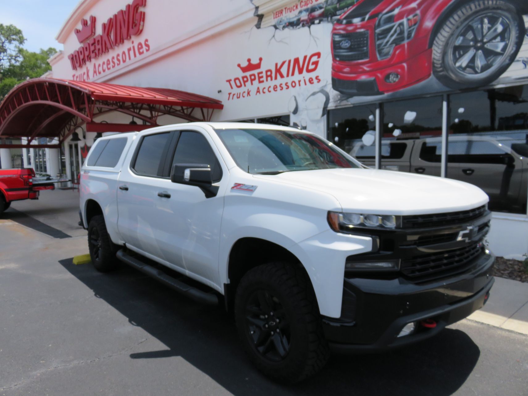 We recently had the pleasure of accessorizing this 2020 White Chevy Silverado with a brand new LEER 100XL fiberglass topper and Stainless Steel Nerf bars.