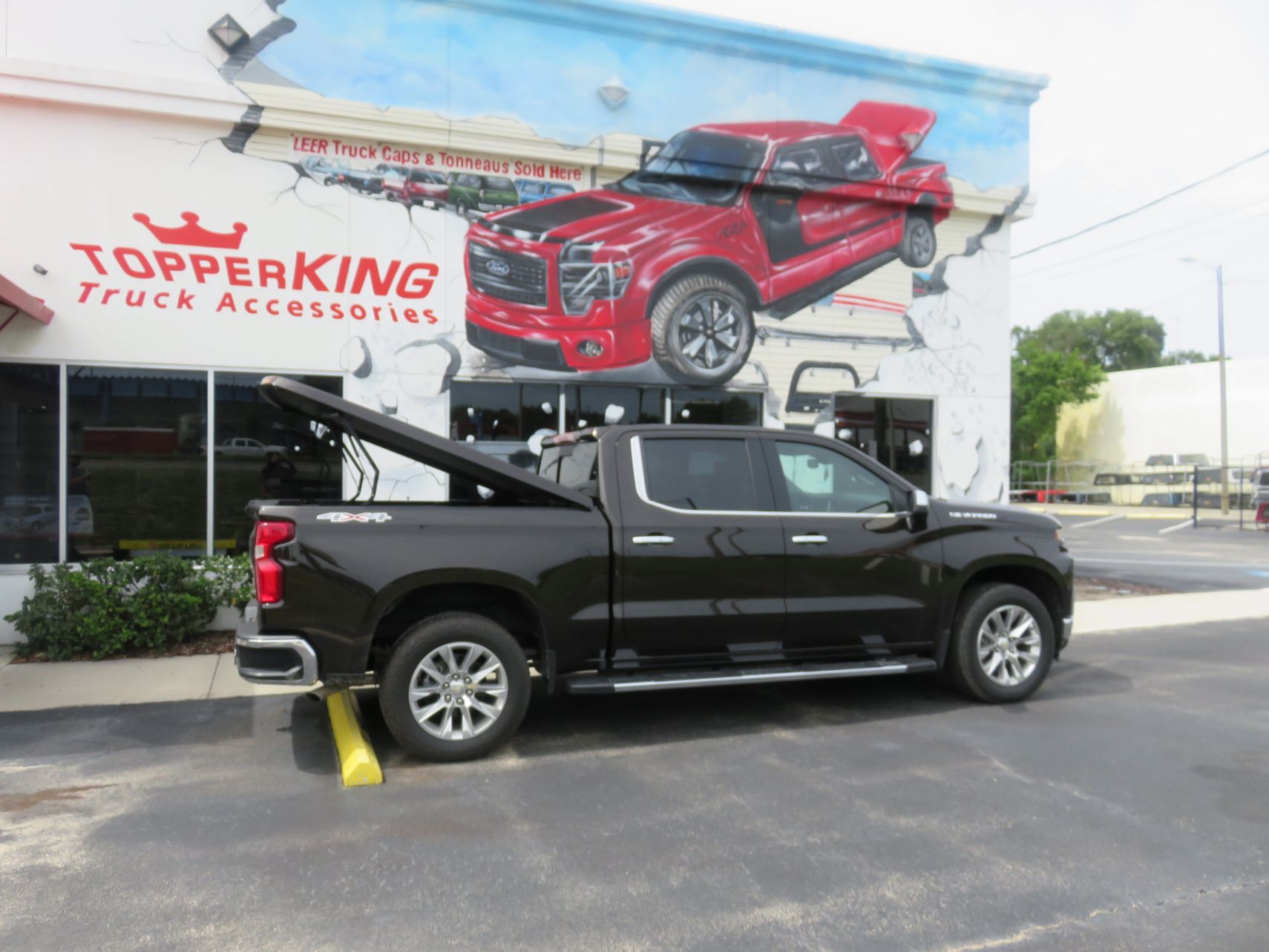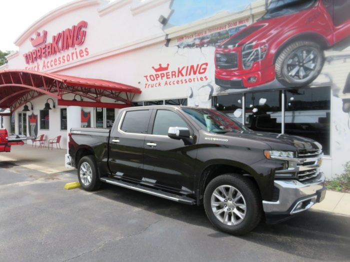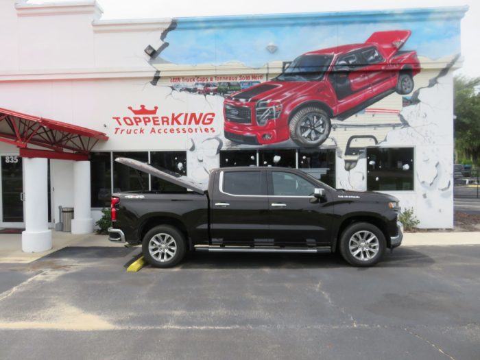 We recently had the pleasure of accessorizing this black 2020 Chevy Silverado a brand new LEER 550 fiberglass topper and Stainless Steel Nerf bars.