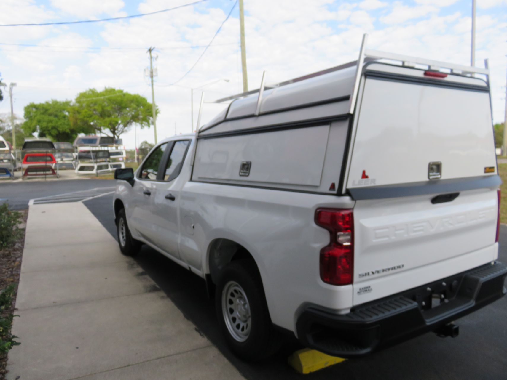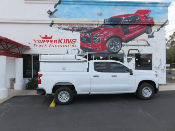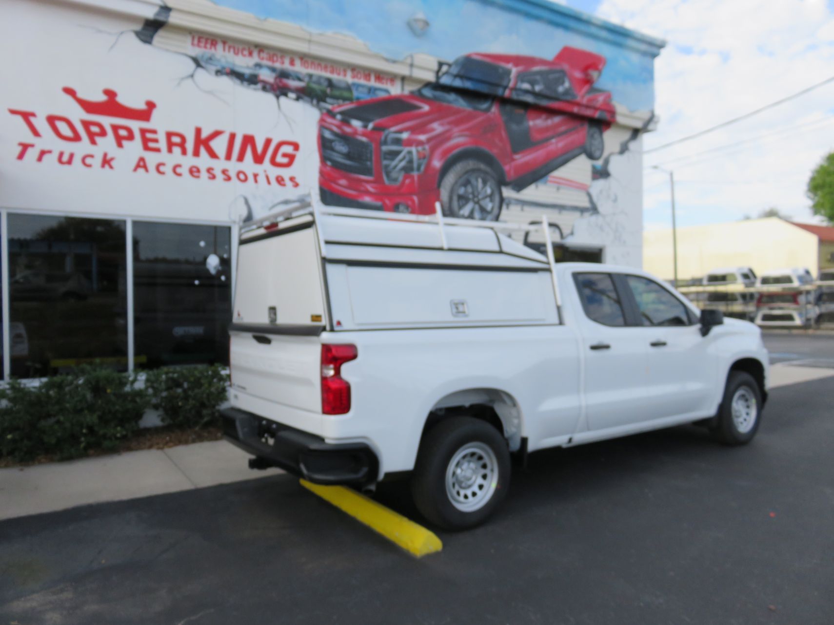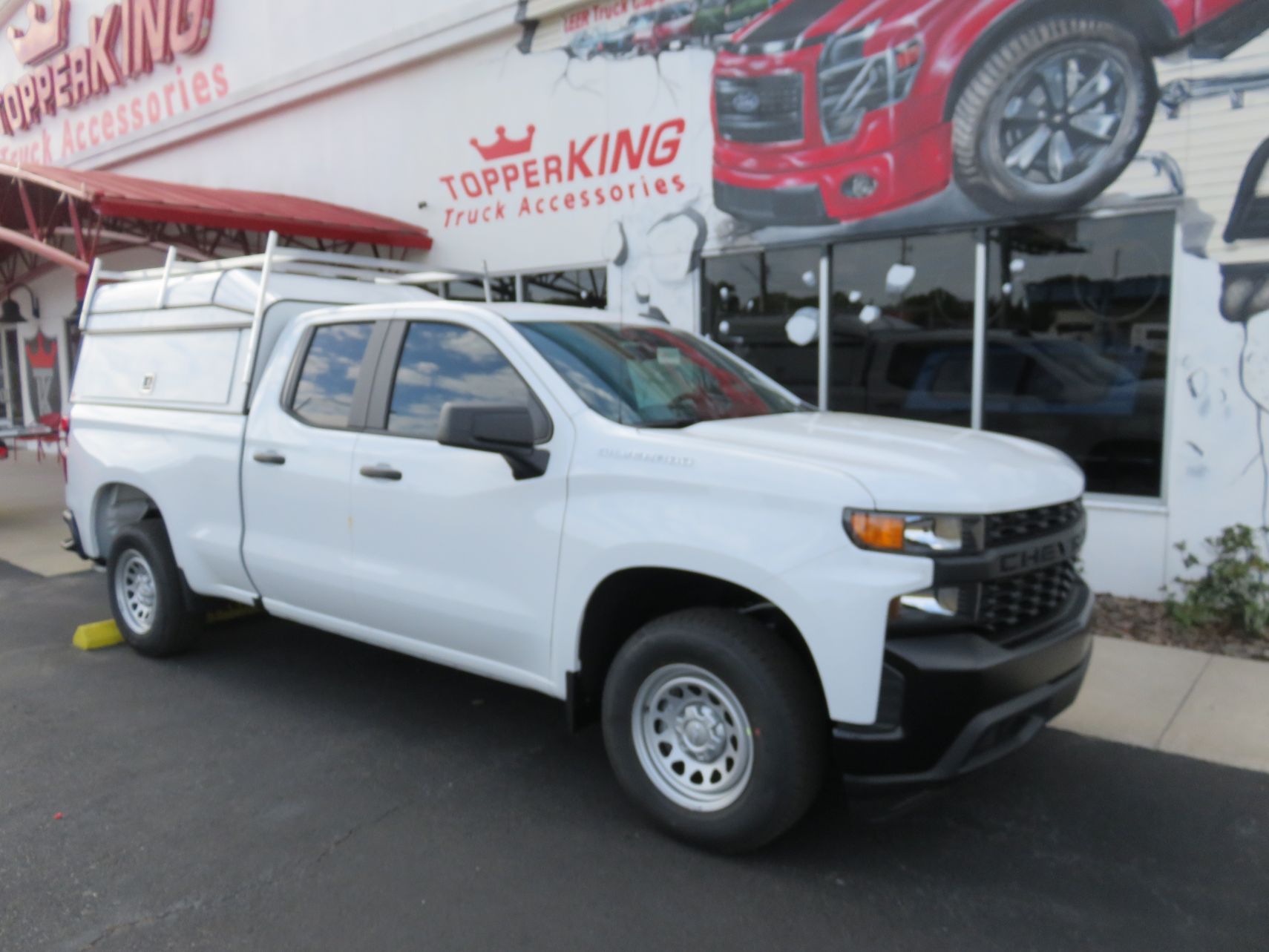 We recently had the pleasure of accessorizing this white 2020 Chevy Silverado with a brand new LEER DCC Commercial topper and Roof Racks.
