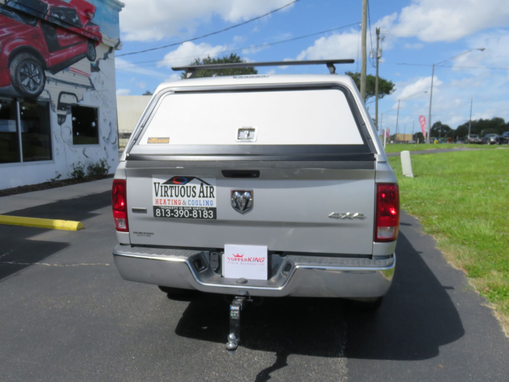 We recently had the pleasure of accessorizing this silver 2018 Dodge RAM with a brand new LEER 100RCC commercial topper and Hitch.