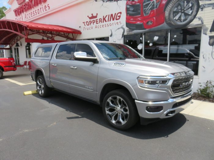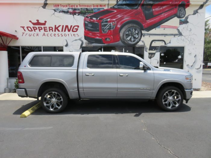 We recently had the pleasure of accessorizing this silver 2019 Dodge RAM with a brand new LEER 100XR fiberglass topper and Hitch.