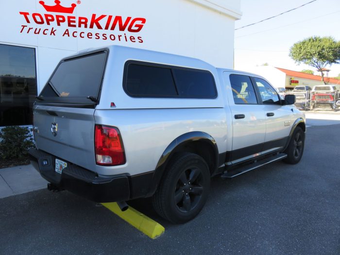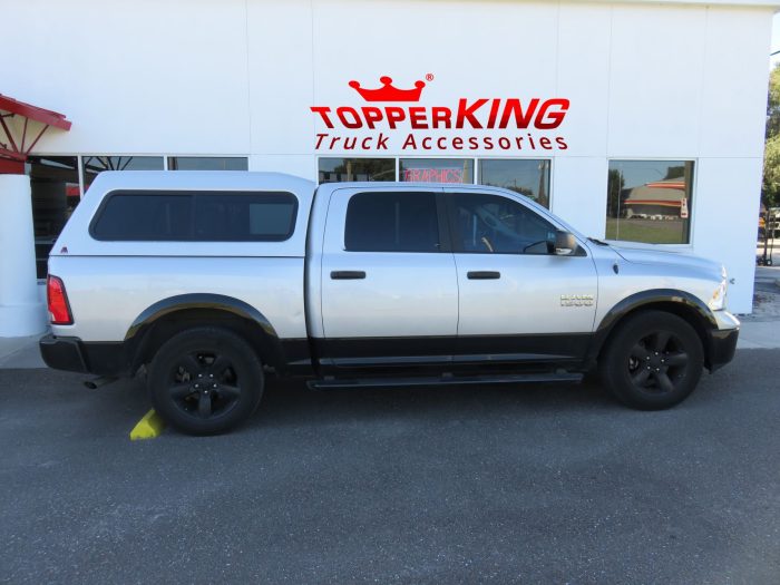 We recently had the pleasure of accessorizing this two tone black and silver 2015 Dodge RAM with a brand new LEER 180 fiberglass topper and Hitch.