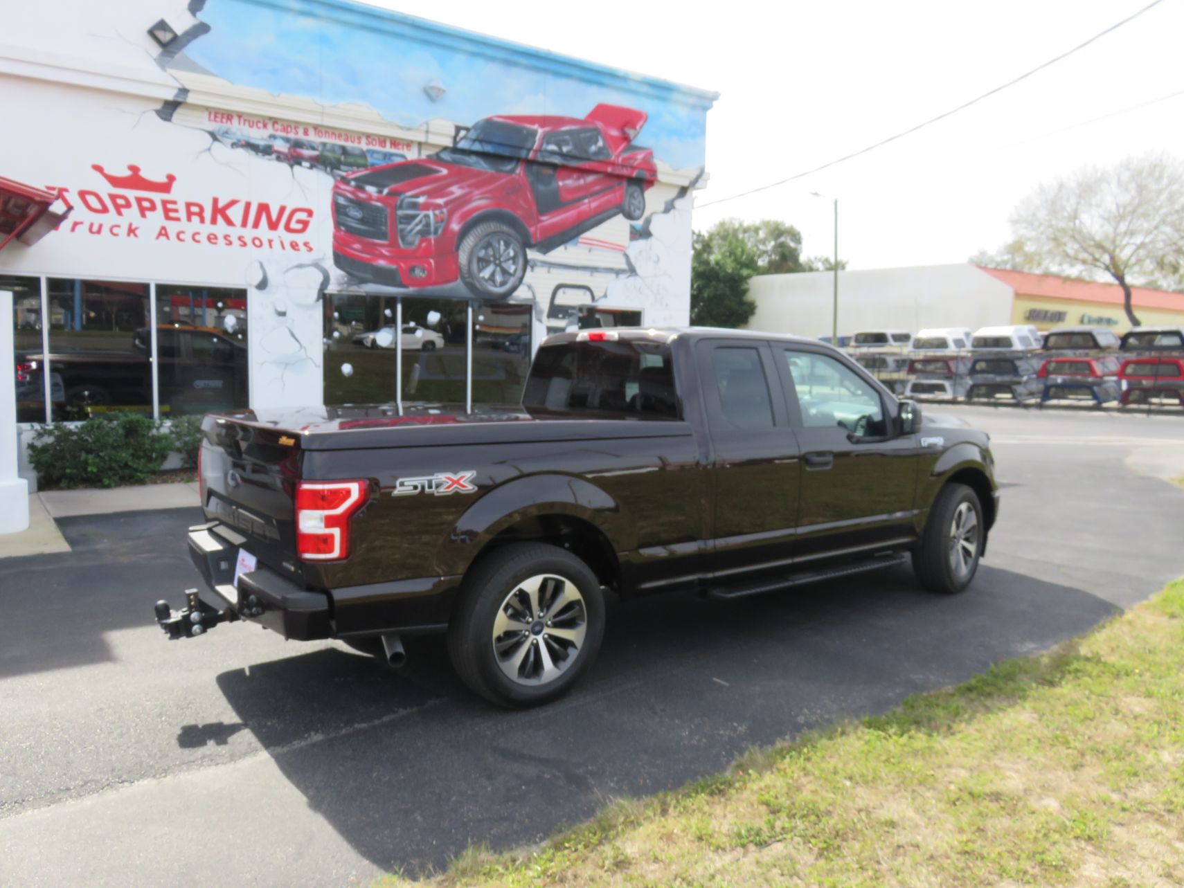 We recently had the pleasure of accessorizing this red 2020 Ford F150 with a brand new LEER 550 fiberglass lid and Hitch.