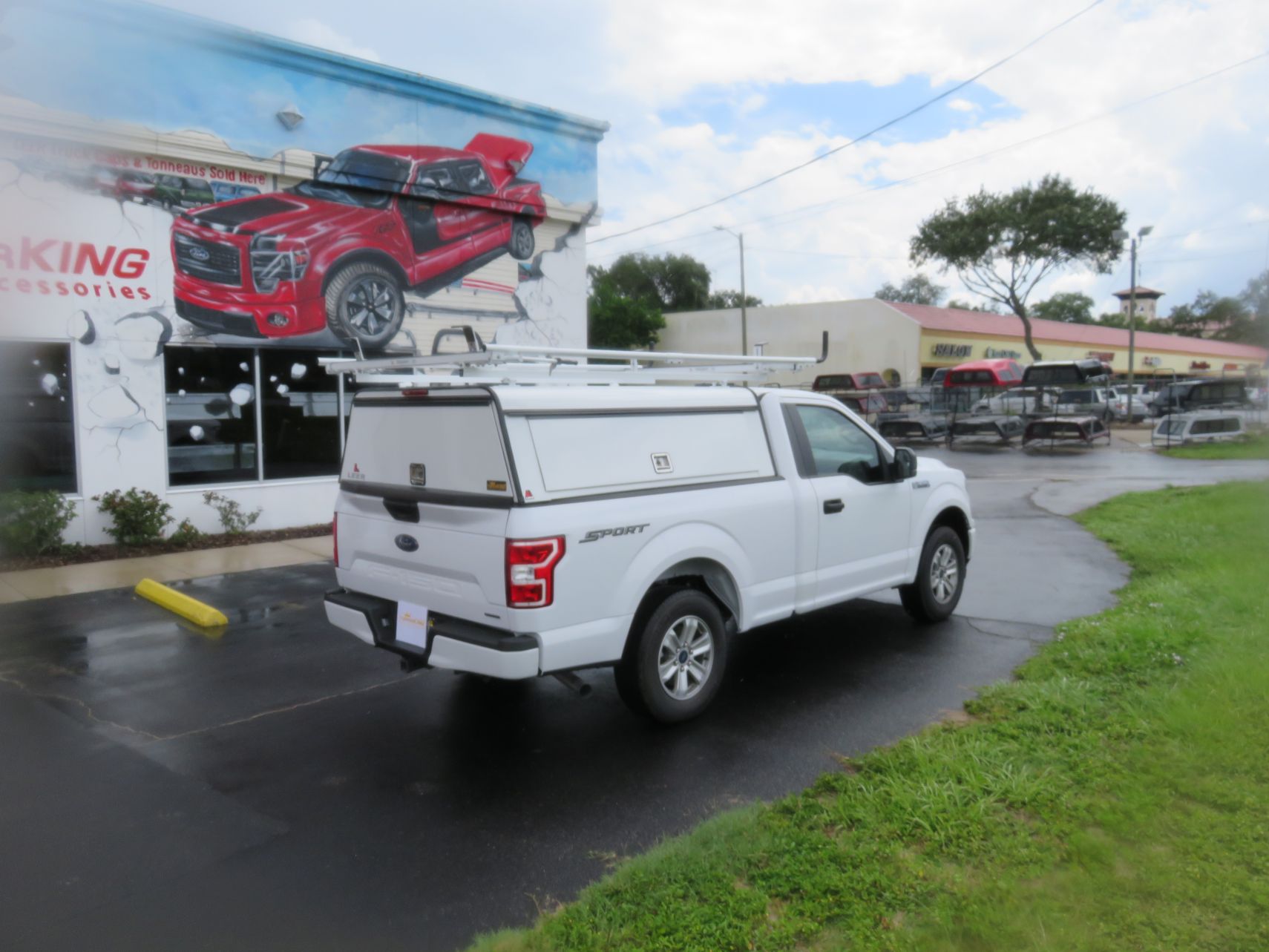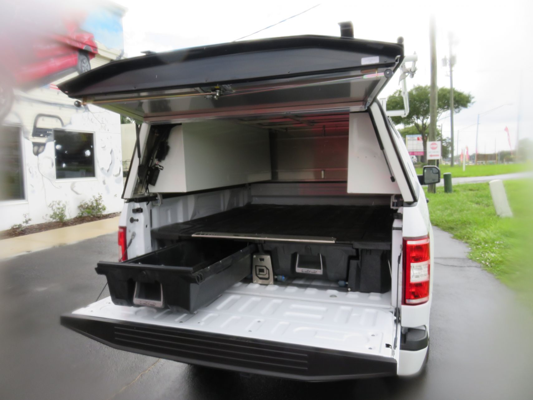 We recently had the pleasure of accessorizing this white 2019 Ford F150 with a brand new LEER DCC Commercial topper and Side Access Doors.