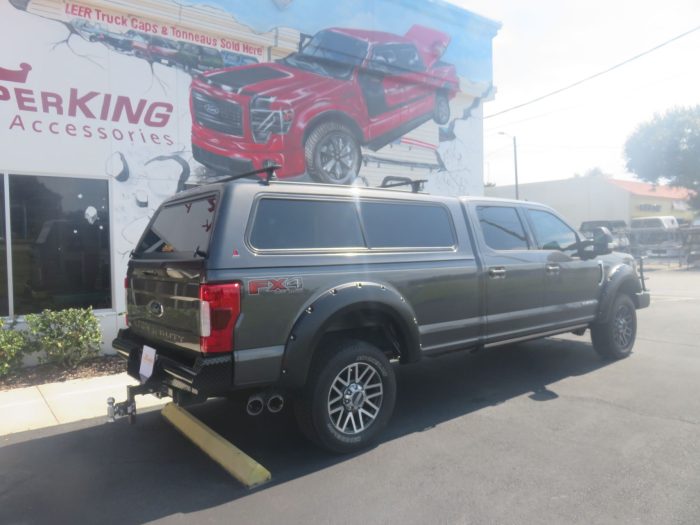 We recently had the pleasure of accessorizing this charcoal 2019 Ford F250 with a brand new LEER 100R fiberglass topper and Grill Guard.