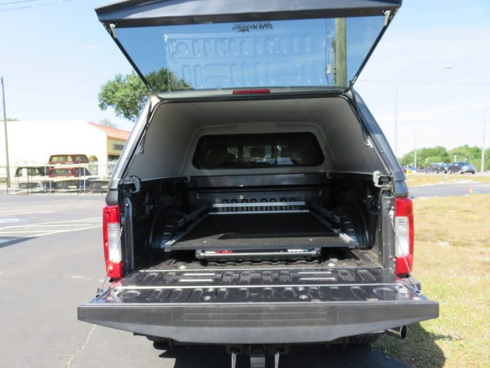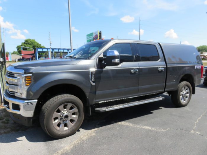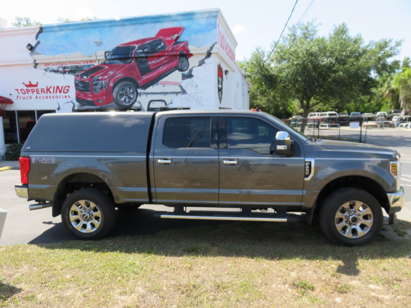 We recently had the pleasure of accessorizing this grey 2020 Ford F250 with a brand new Ranch Sierra fiberglass topper and BedSlide.